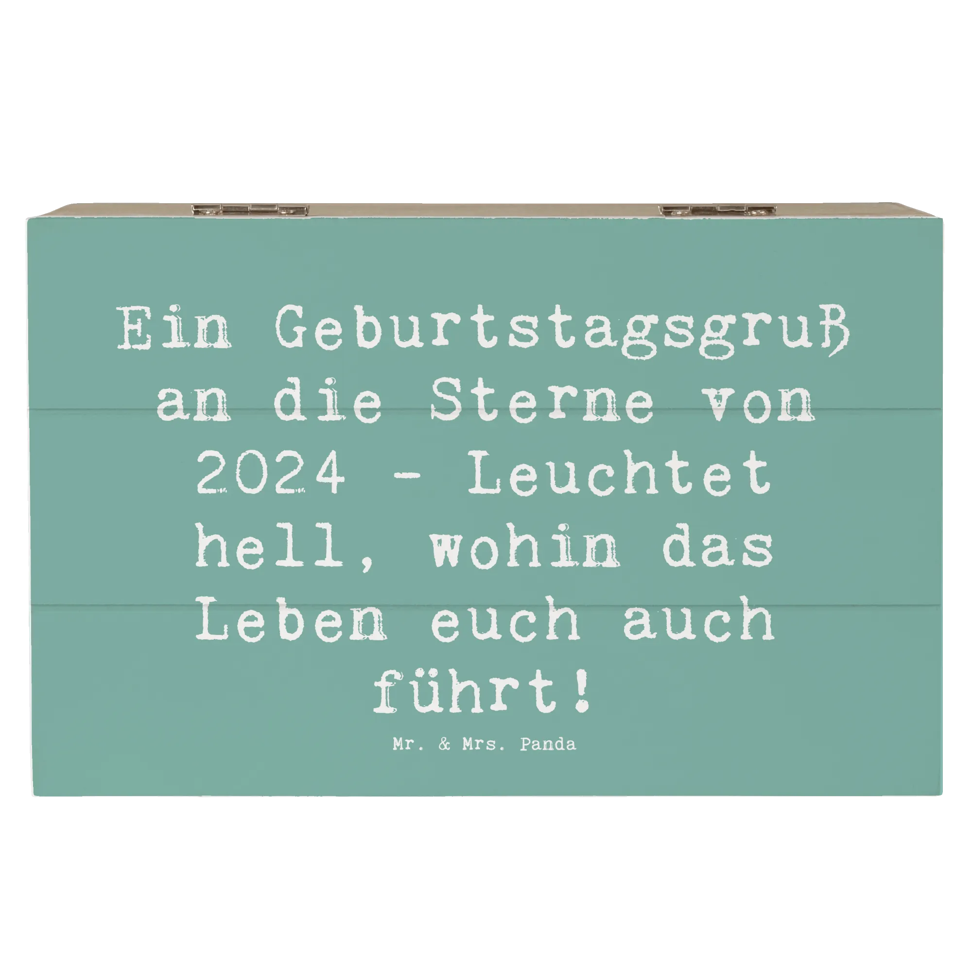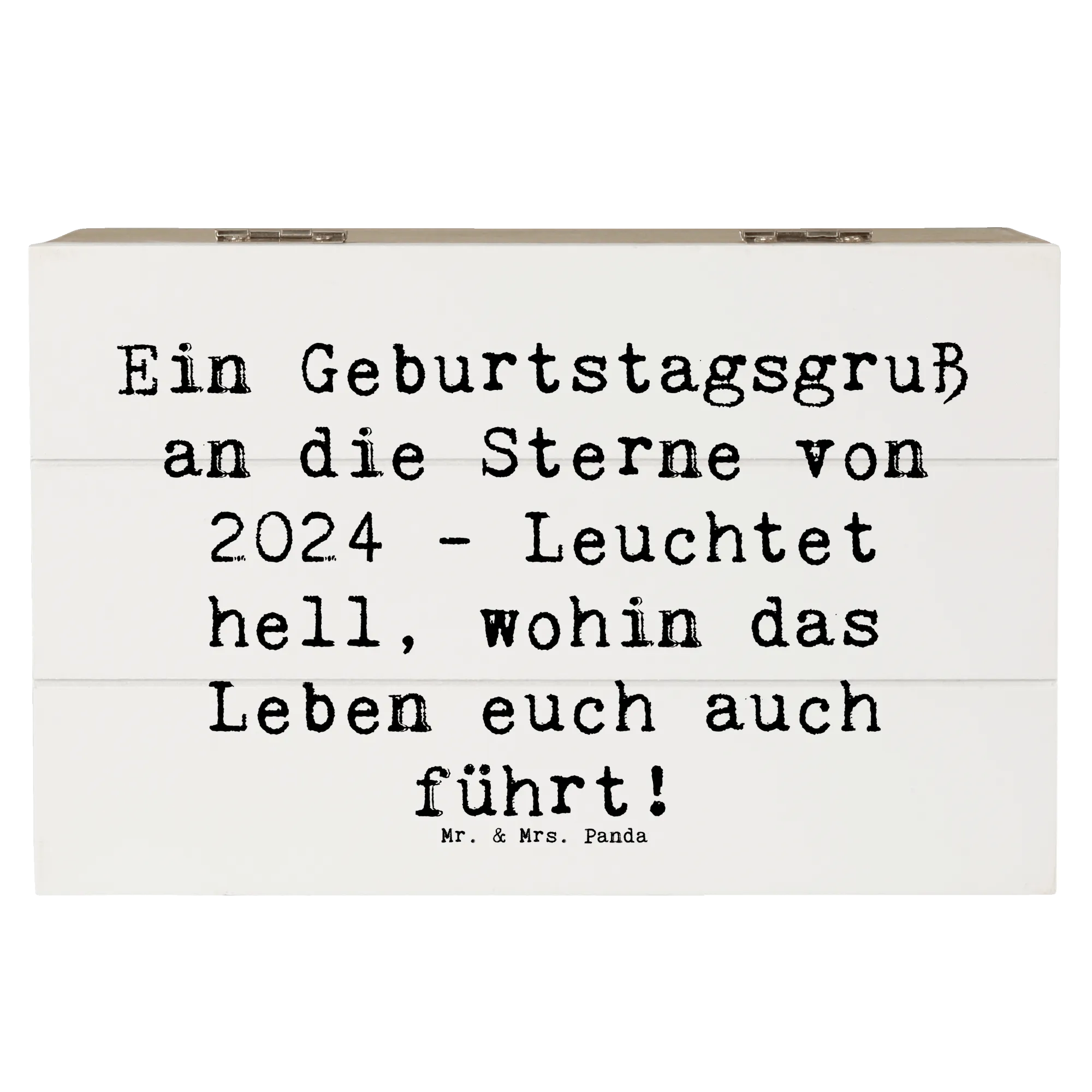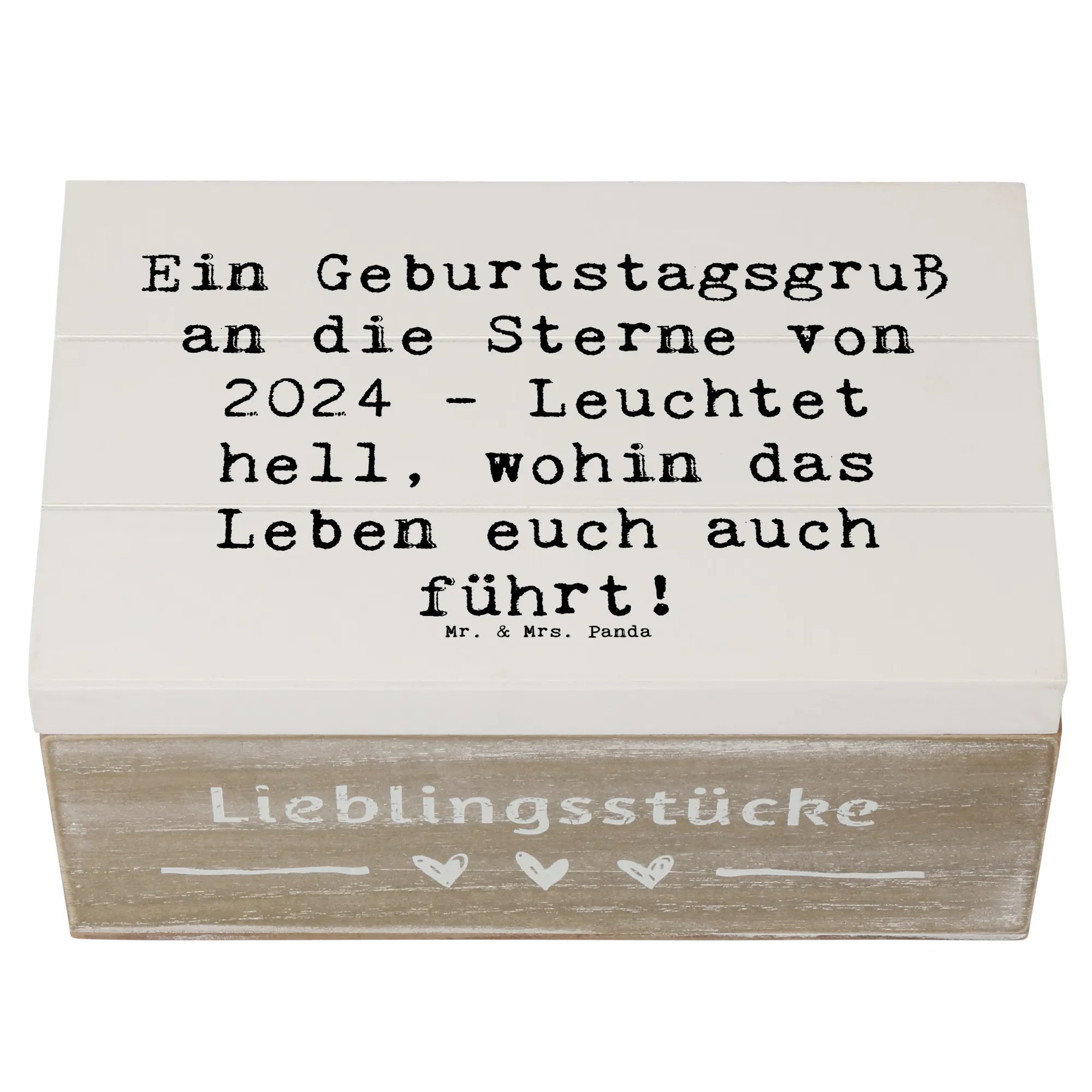Die Holzkiste von Mr. & Mrs. Panda ist das perfekte Geschenk für jeden Geburtstag im Jahr 2024! Mit ihrem liebevollen Design und dem Spruch 'Ein Geburtstagsgruß an die Sterne von 2024 - Leuchtet hell, wohin das Leben euch auch führt!' bringt diese Kiste Freude und gute Wünsche in jedes Zuhause.