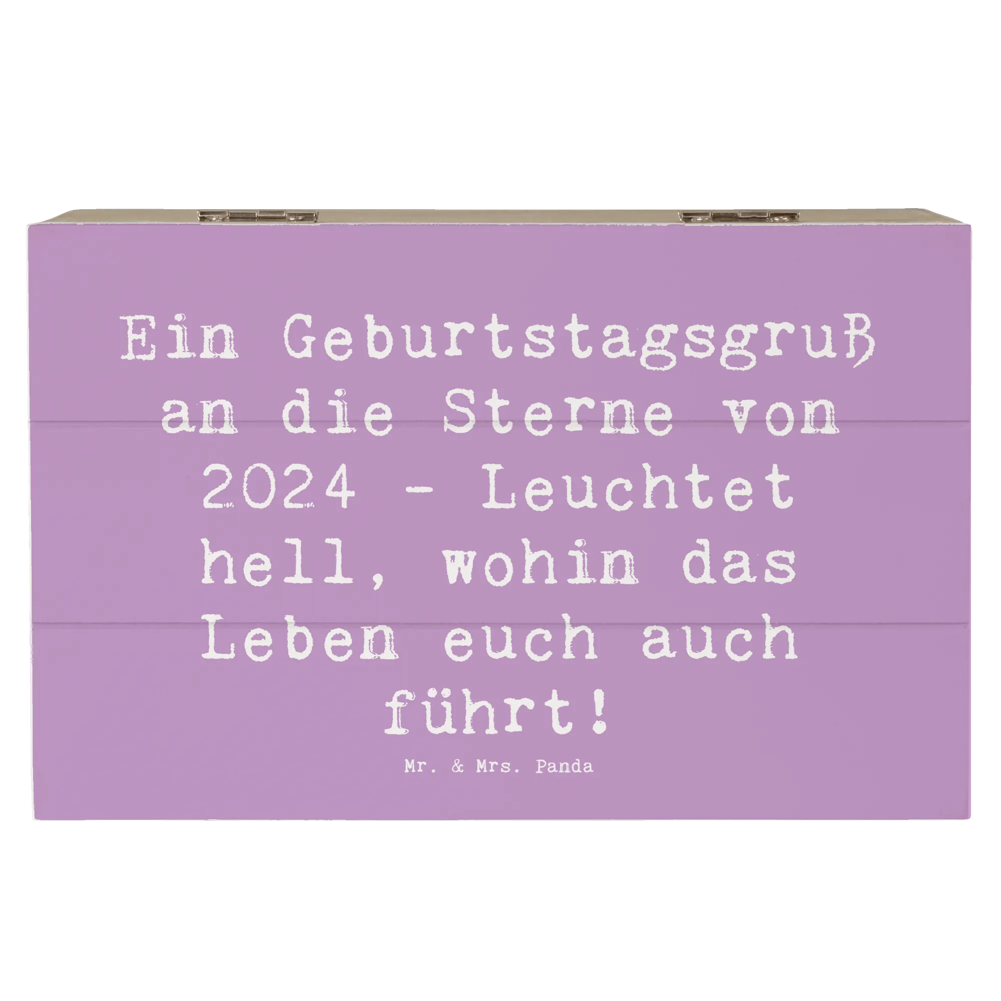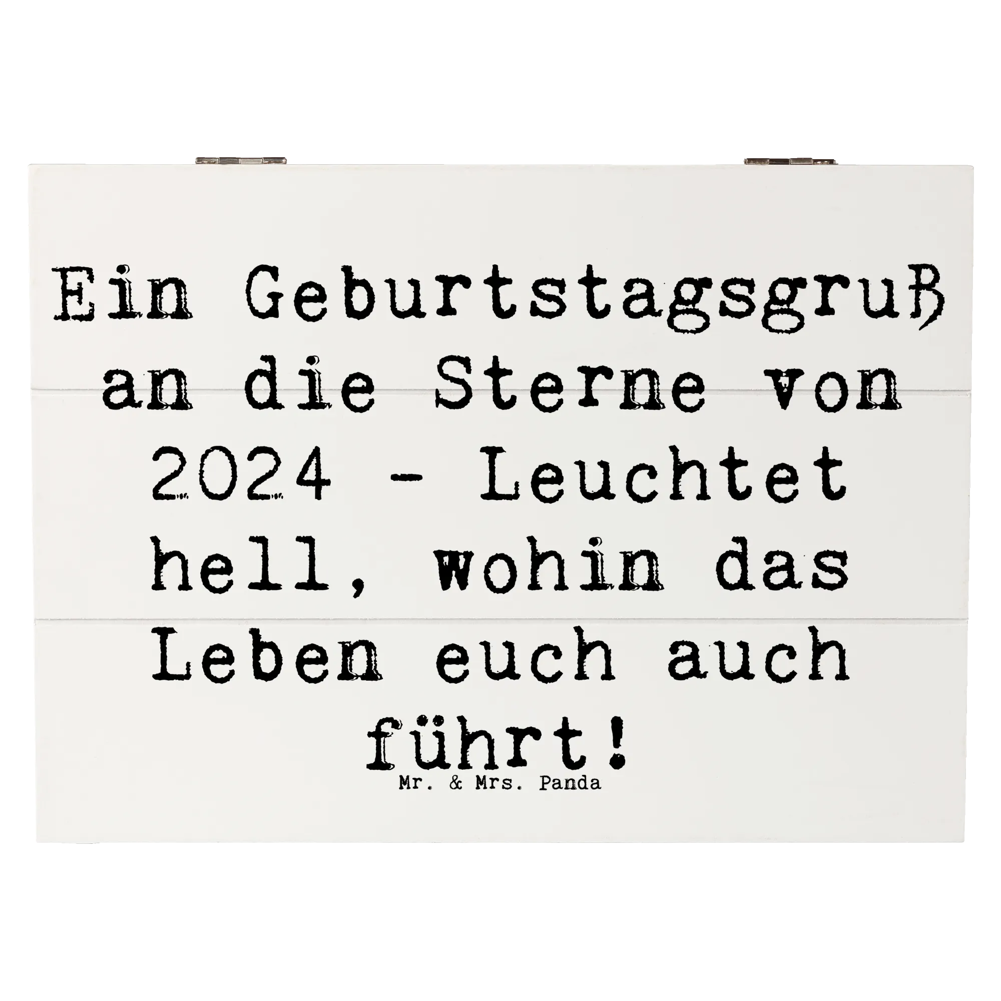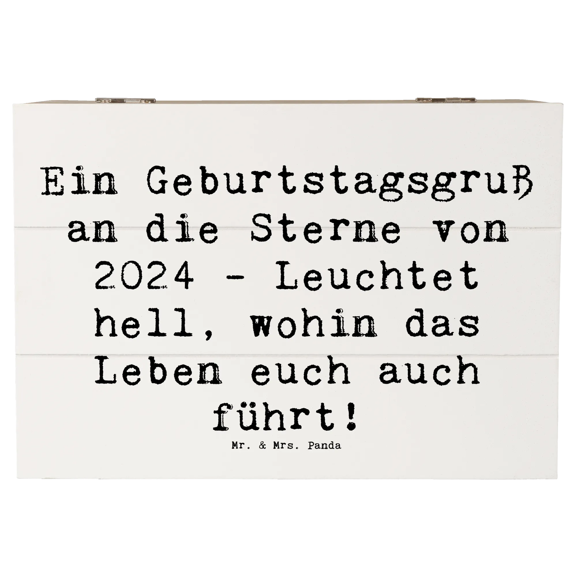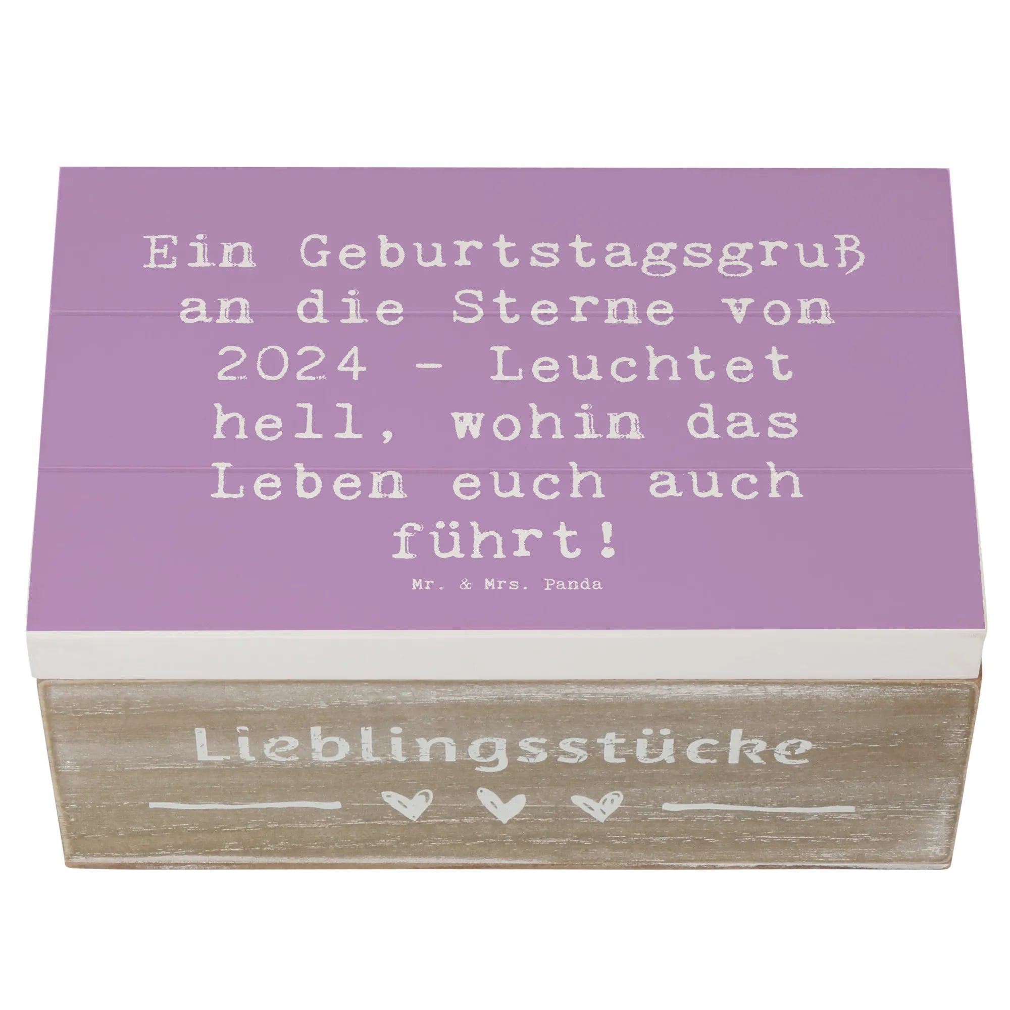 Die Holzkiste von Mr. & Mrs. Panda ist das perfekte Geschenk für jeden Geburtstag im Jahr 2024! Mit ihrem liebevollen Design und dem Spruch 'Ein Geburtstagsgruß an die Sterne von 2024 - Leuchtet hell, wohin das Leben euch auch führt!' bringt diese Kiste Freude und gute Wünsche in jedes Zuhause.