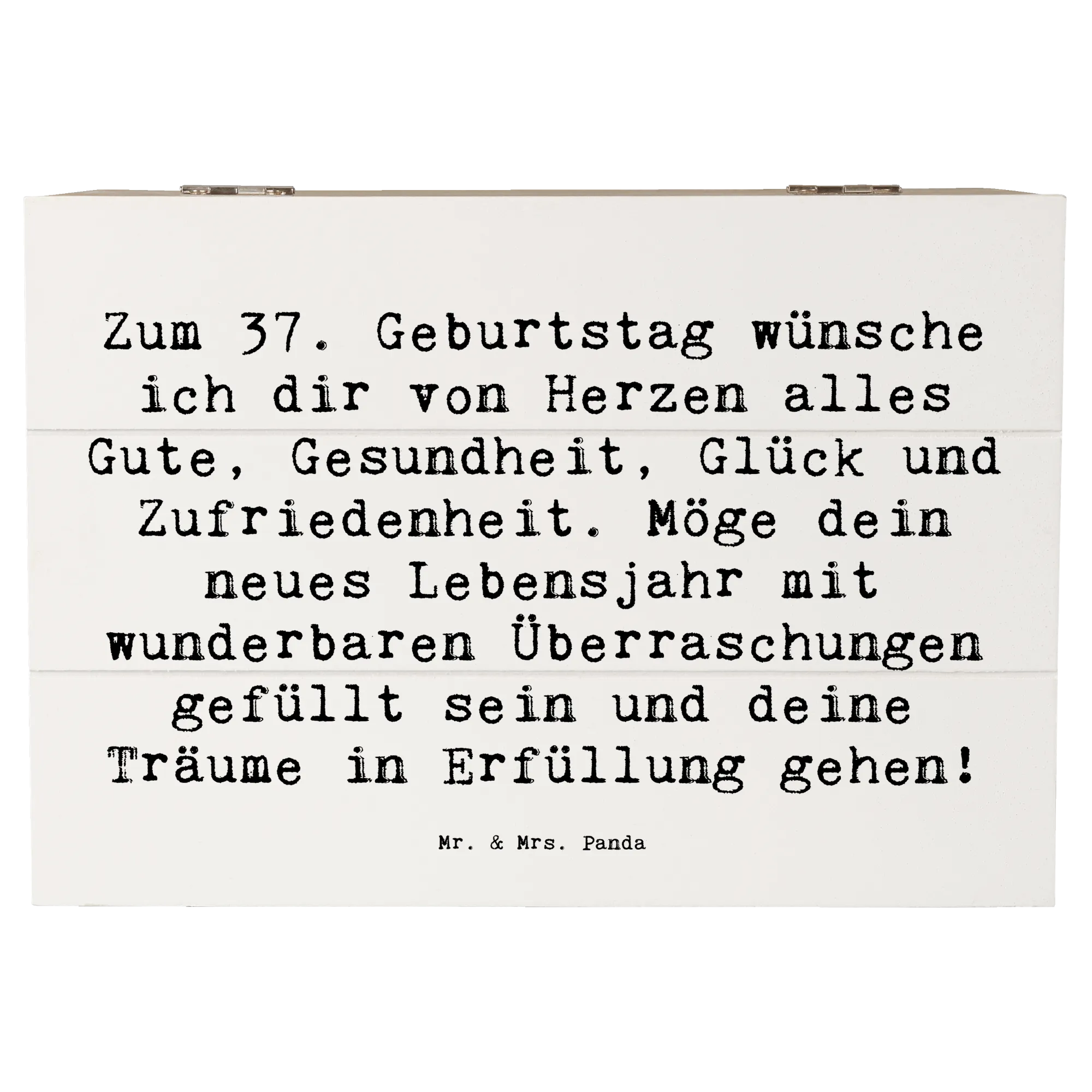 Holzkiste Spruch 37. Geburtstag Grüße - 22 x 15 cm - Weiß