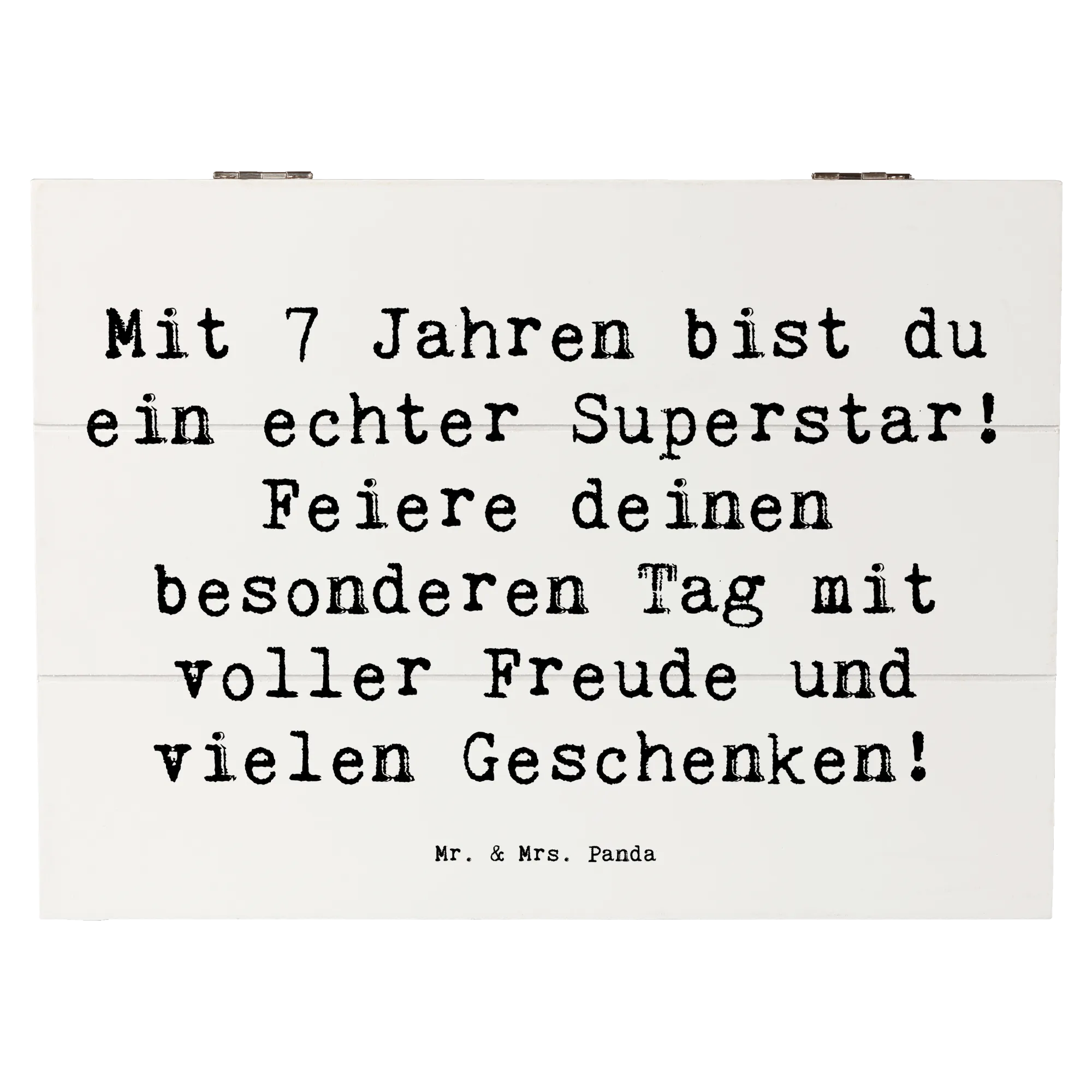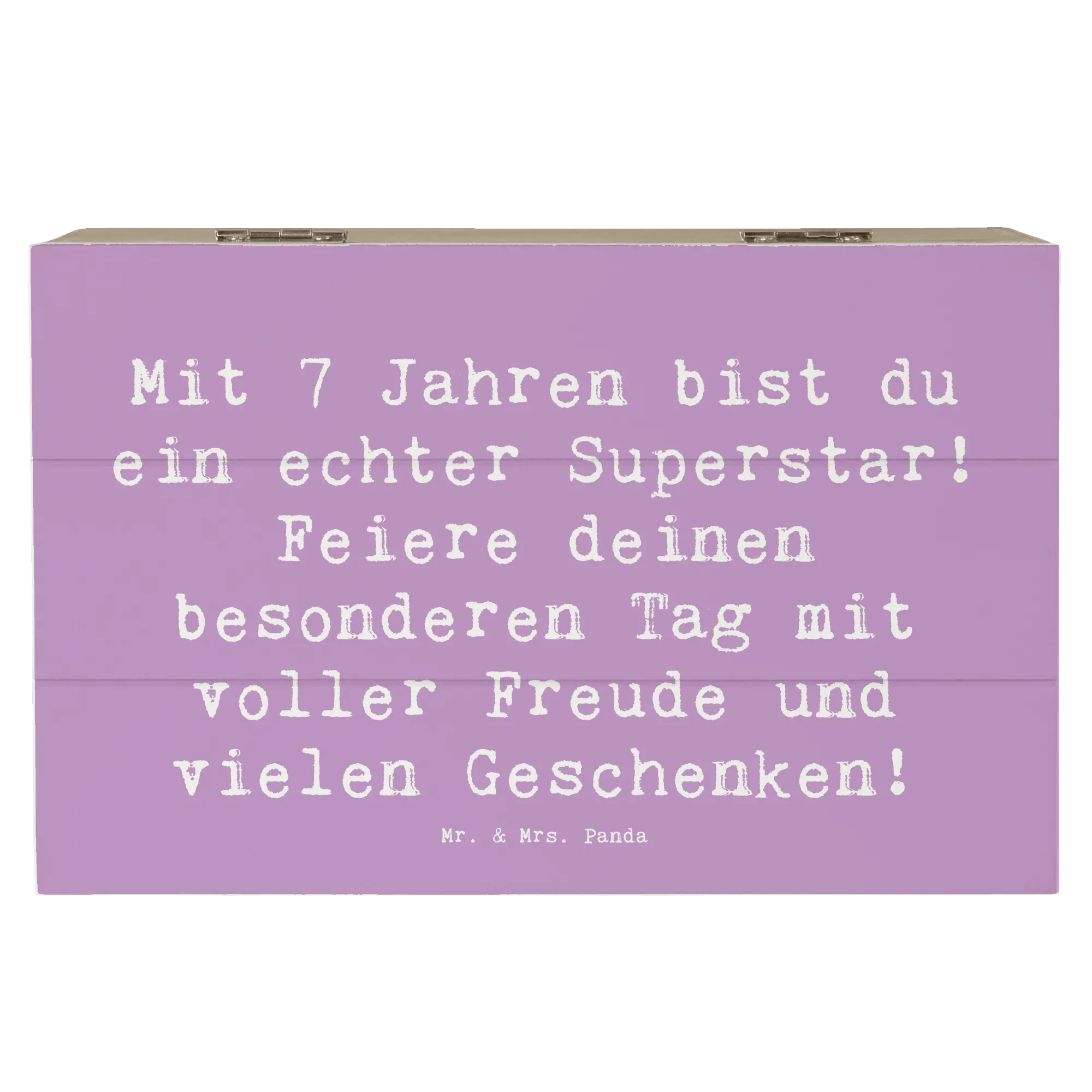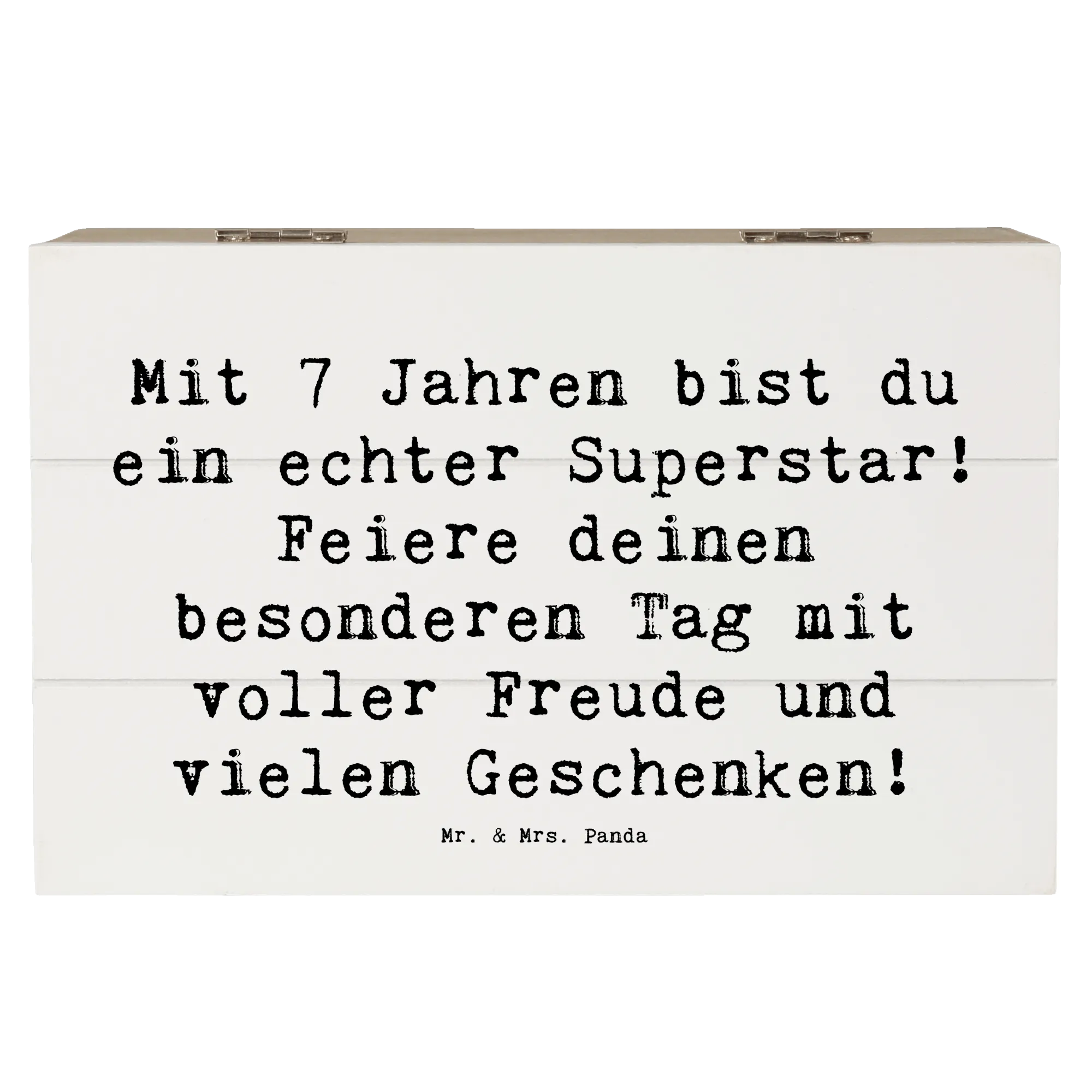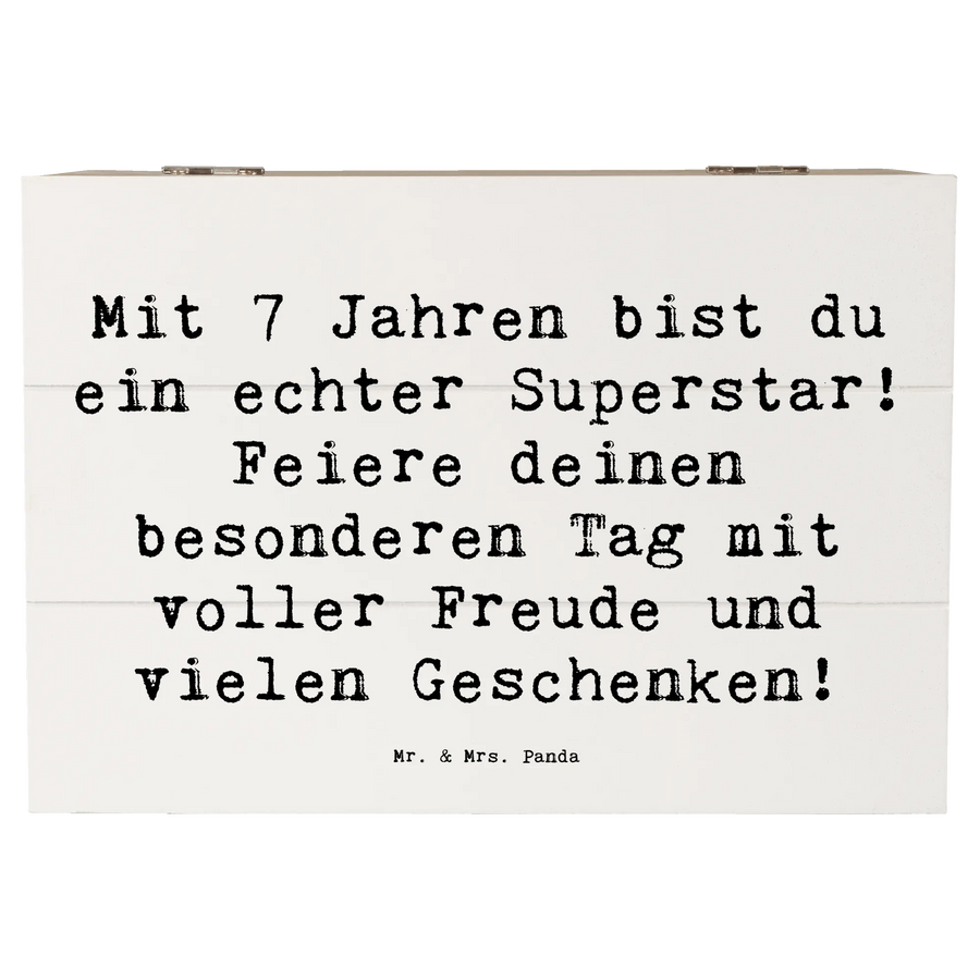 Die wunderschöne Holzkiste von Mr. & Mrs. Panda ist das perfekte Geschenk zum 7. Geburtstag! Mit dem Spruch "Mit 7 Jahren bist du ein echter Superstar! Feiere deinen besonderen Tag mit voller Freude und vielen Geschenken!" ist sie ein echter Hingucker und verleiht jedem Fest eine besondere Note.