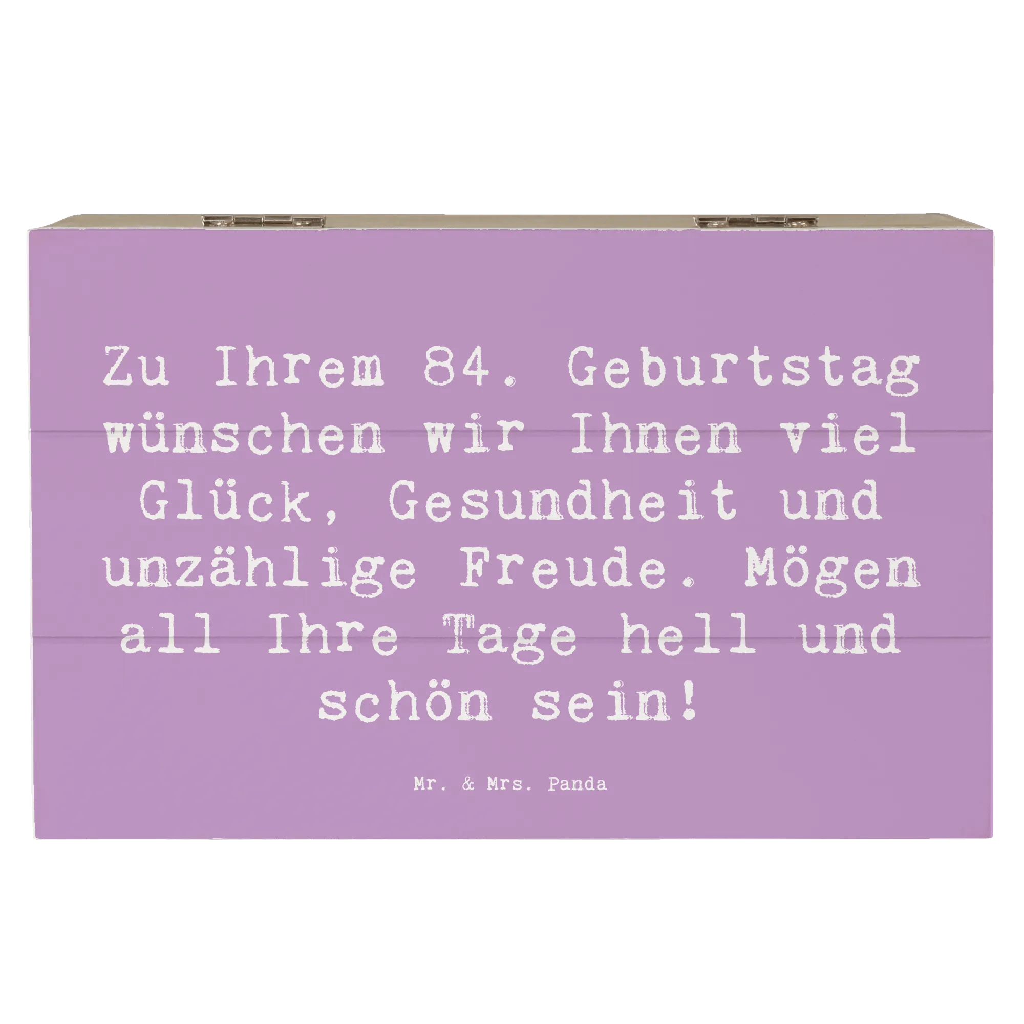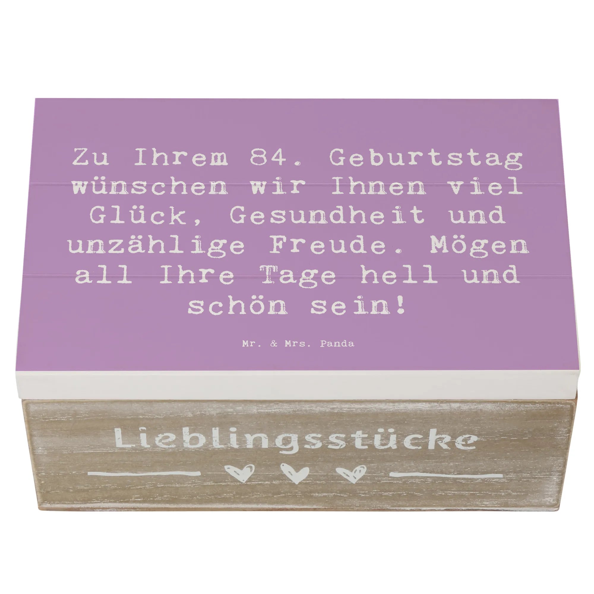 Mit dem liebevollen Spruch "Zu Ihrem 84. Geburtstag wünschen wir Ihnen viel Glück, Gesundheit und unzählige Freude. Mögen all Ihre Tage hell und schön sein!" auf der Truhe wird jede feierliche Gelegenheit auf wundervolle Weise gewürdigt.
