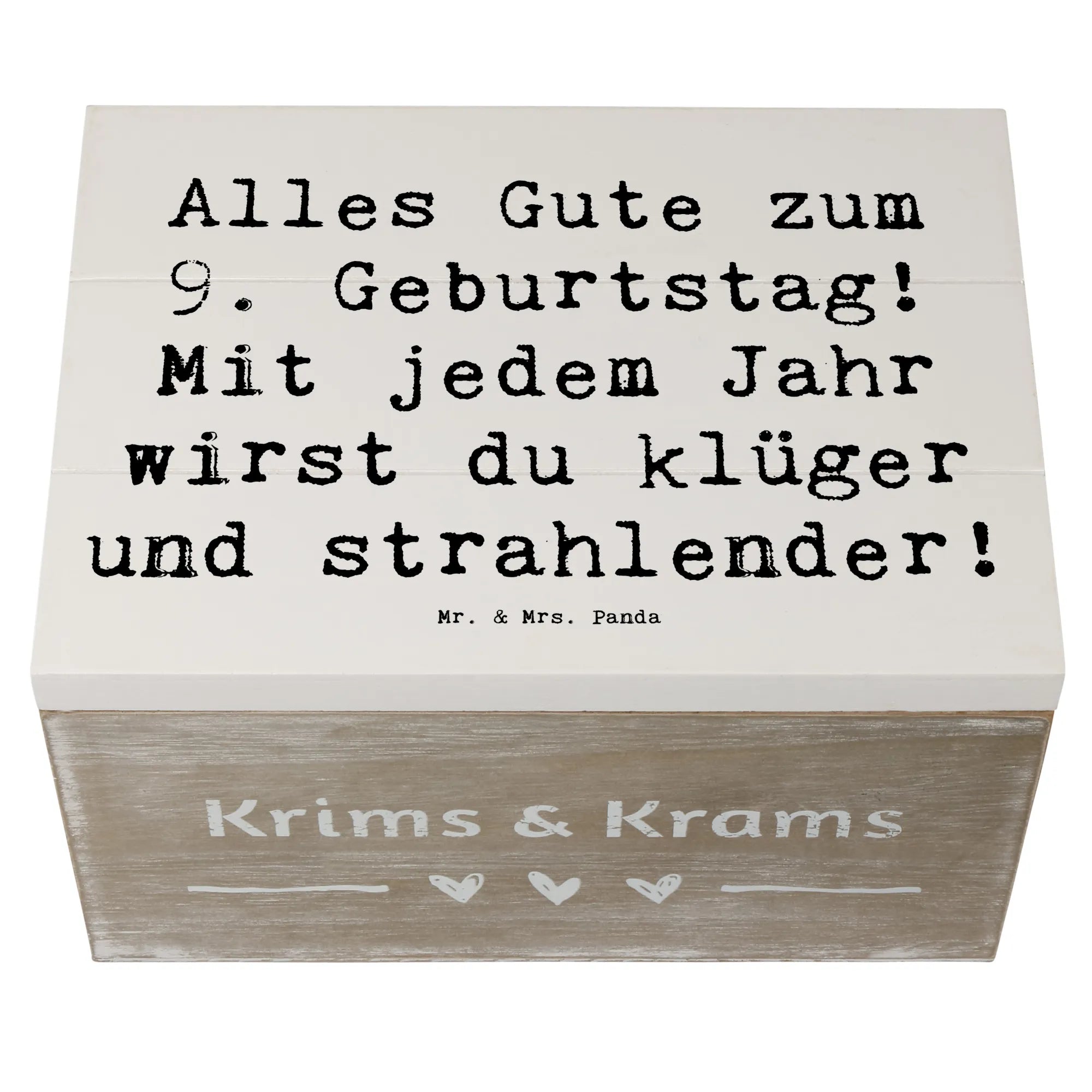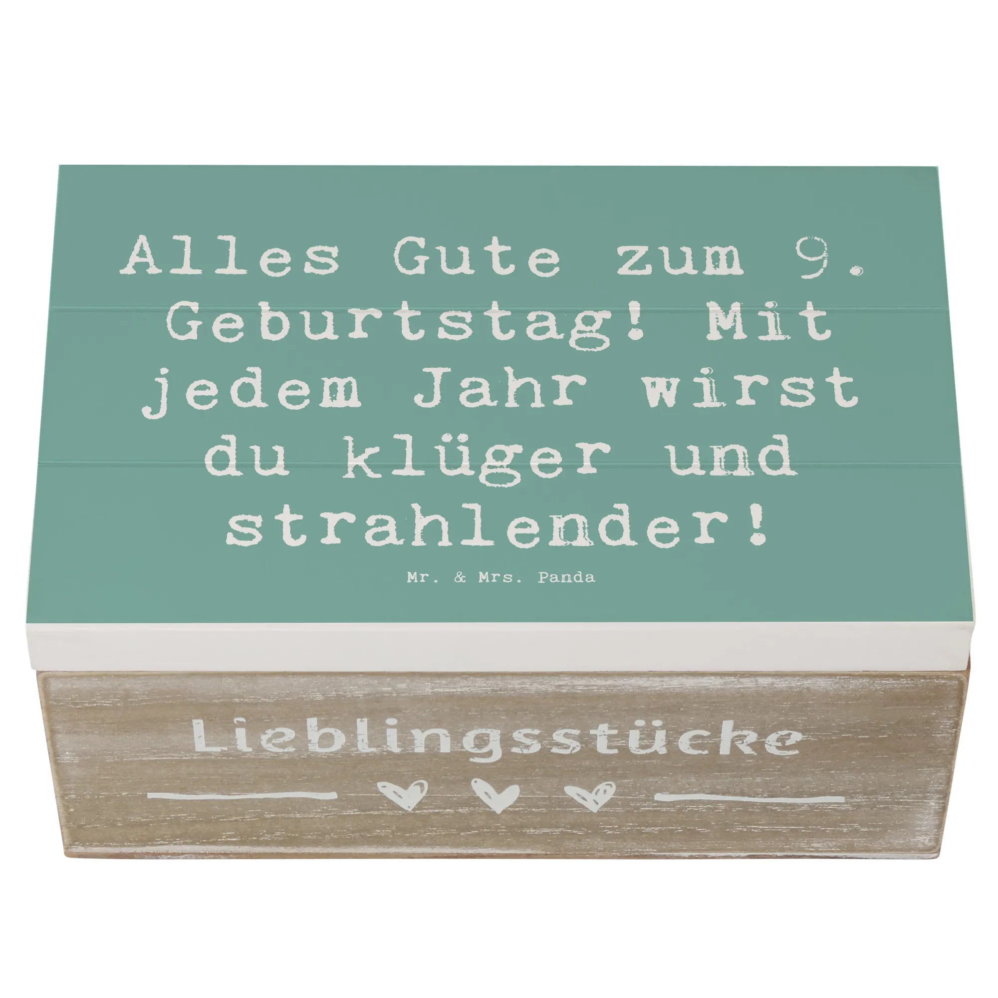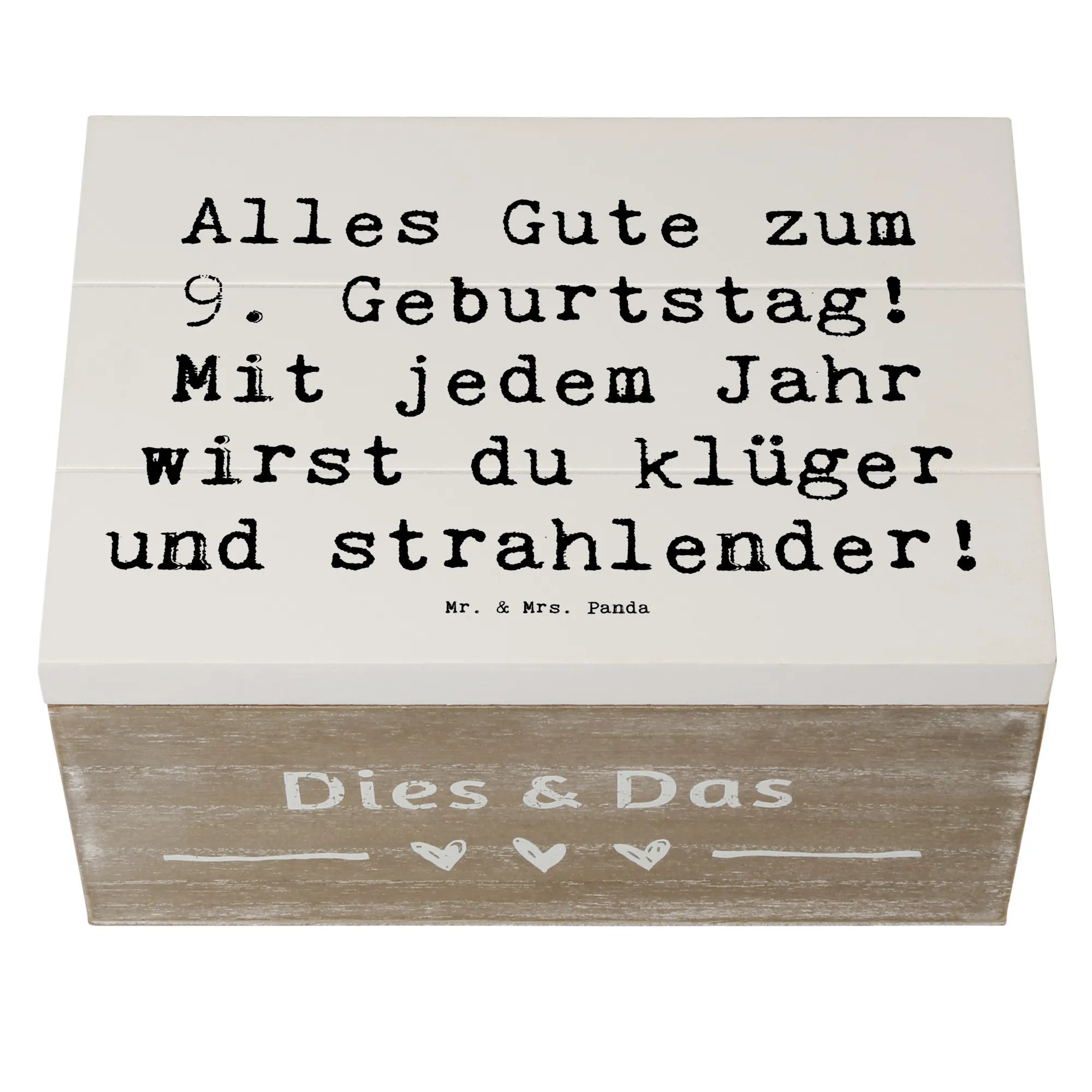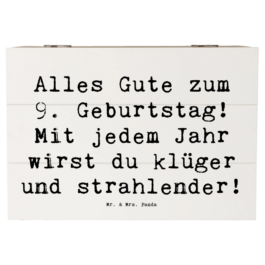 Die wunderschöne Holzkiste von Mr. & Mrs. Panda ist das perfekte Geschenk zum 9. Geburtstag! Mit dem Spruch "Alles Gute zum 9. Geburtstag! Mit jedem Jahr wirst du klüger und strahlender!" wird diese Erinnerungskiste zum besonderen Schatz für jeden neuen Neunjährigen.