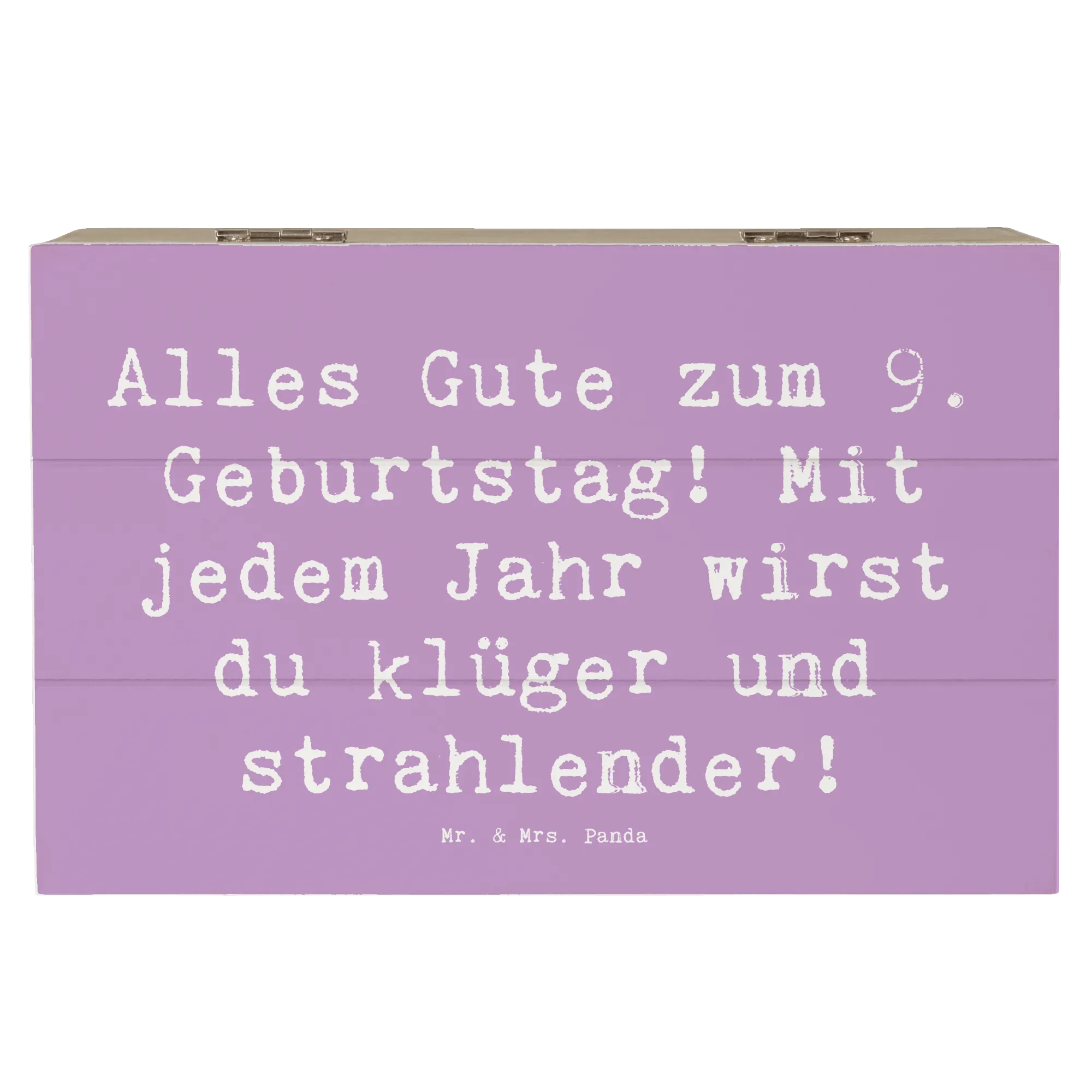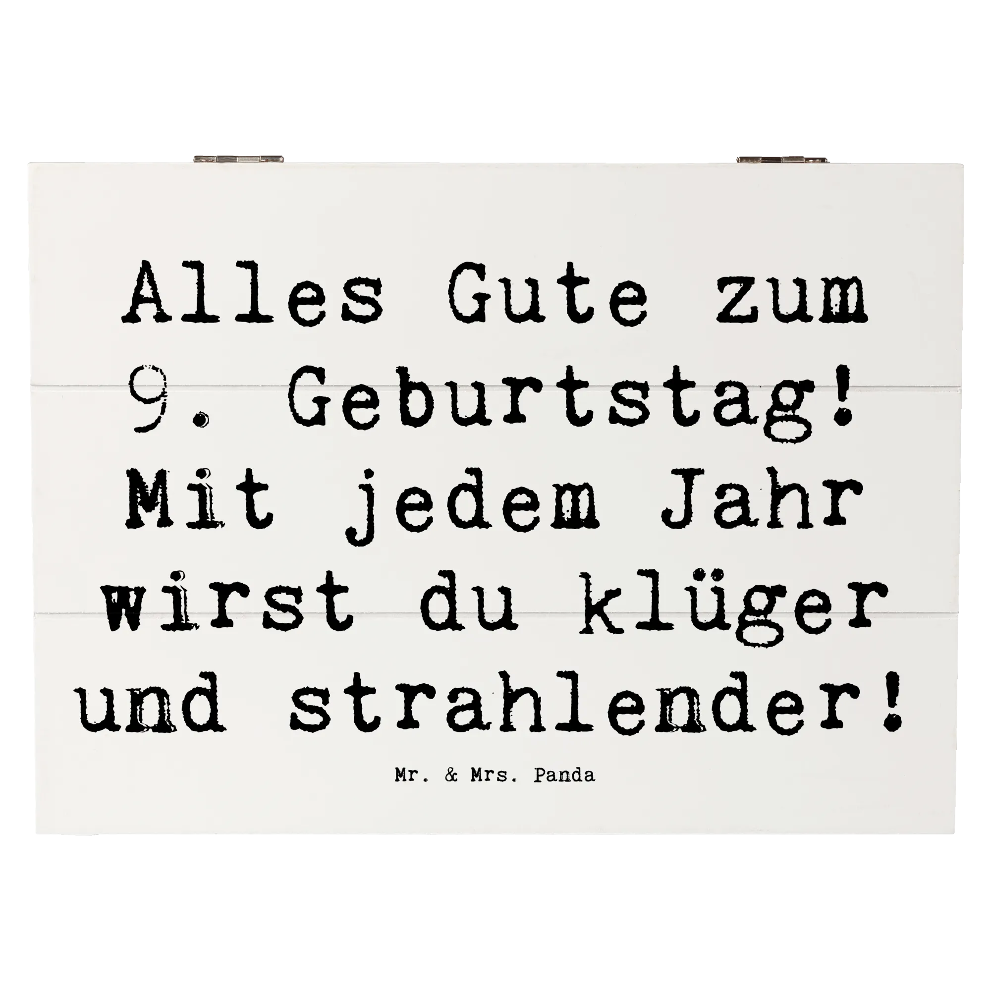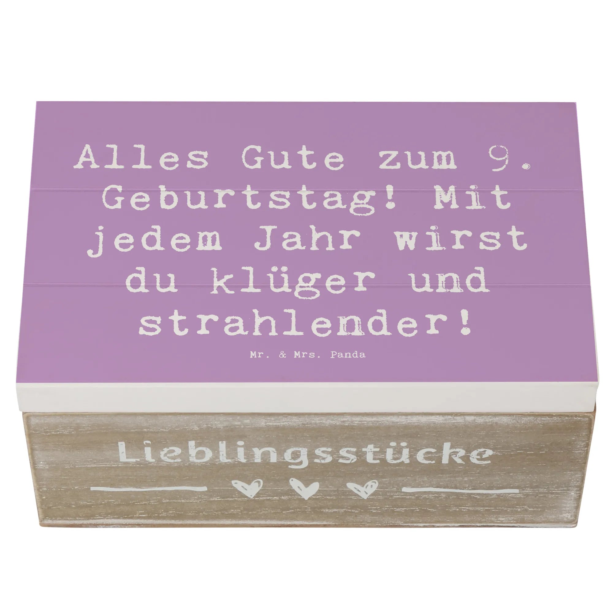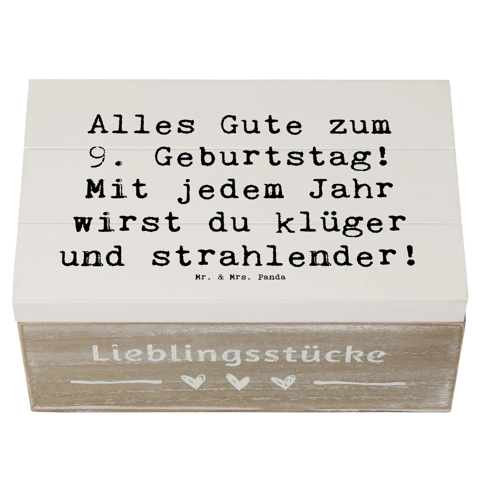 Die wunderschöne Holzkiste von Mr. & Mrs. Panda ist das perfekte Geschenk zum 9. Geburtstag! Mit dem Spruch "Alles Gute zum 9. Geburtstag! Mit jedem Jahr wirst du klüger und strahlender!" wird diese Erinnerungskiste zum besonderen Schatz für jeden neuen Neunjährigen.