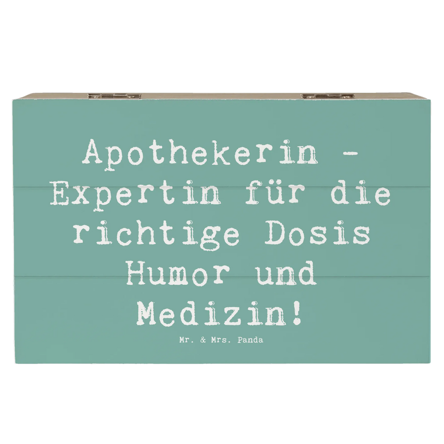 Mr. & Mrs. Panda Holzkiste „Apothekerin“ – die perfekte Geschenkidee für alle, die Heilkunst mit Humor verbinden. Mit dem liebevollen Spruch „Apothekerin - Expertin für die richtige Dosis Humor und Medizin!” wird diese Aufbewahrungsbox zum charmanten Hingucker in Praxis, Büro oder Zuhause. 🎁