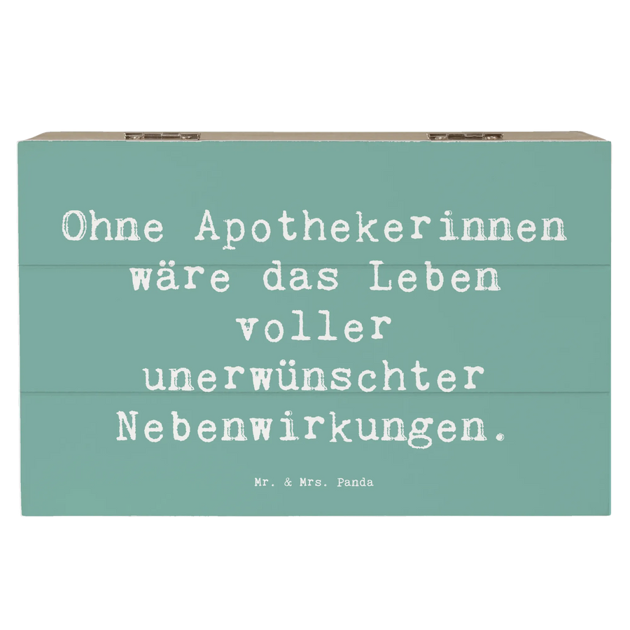 Entdecke die wunderschöne Holzkiste Apothekerin von Mr. & Mrs. Panda! Diese einzigartige Kiste ist nicht nur ein eleganter Aufbewahrungsort für all Deine wertvollen Schätze, sondern auch ein liebevolles Geschenk für jeden, der im Gesundheitswesen arbeitet oder einfach nur die Bedeutung dieser wertvollen Berufsgruppe schätzt. Mit dem charmanten Spruch 'Ohne Apothekerinnen wäre das Leben voller unerwünschter Nebenwirkungen.' zauberst Du jedem ein Lächeln ins Gesicht!