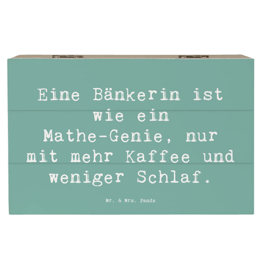 Entdecke die zauberhafte Holzkiste "Bänkerin" von Mr. & Mrs. Panda! Diese bezaubernde Schatzkiste ist nicht nur eine Aufbewahrungsbox für Deine wertvollen Erinnerungen, sondern auch ein liebevolles Geschenk für alle, die im Beruf als Bänkerin tätig sind. Mit einem charmanten Slogan, der lautet: "Eine Bänkerin ist wie ein Mathe-Genie, nur mit mehr Kaffee und weniger Schlaf", bringt diese Kiste ein Lächeln auf jedes Gesicht.