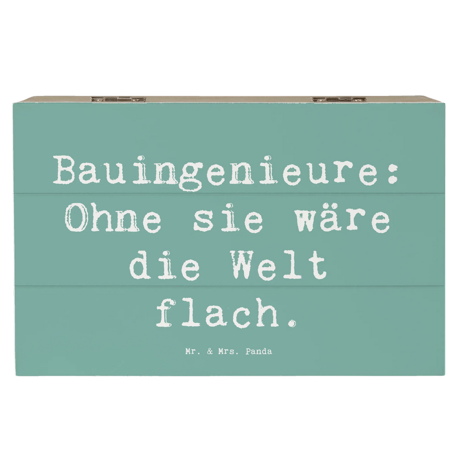 Die wunderschöne Holzkiste von Mr. & Mrs. Panda ist das perfekte Geschenk für jeden Bauingenieur! Mit einem liebevollen Spruch, der besagt: "Bauingenieure: Ohne sie wäre die Welt flach", wird diese Kiste schnell zum persönlichen Highlight.