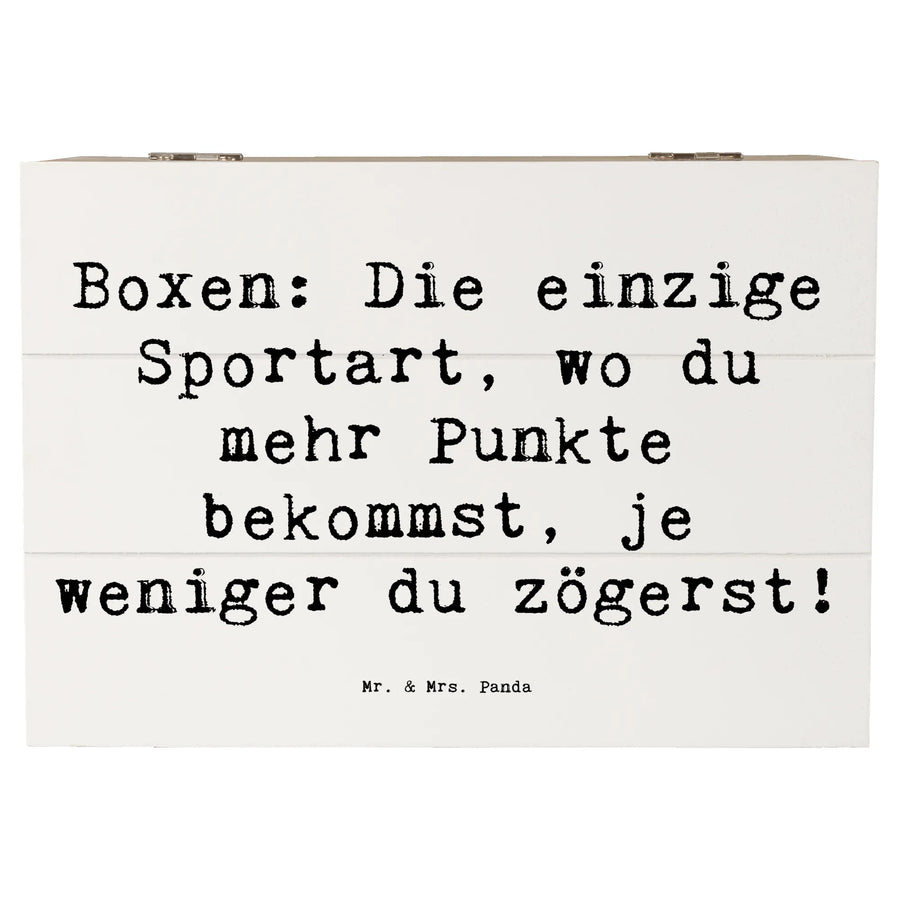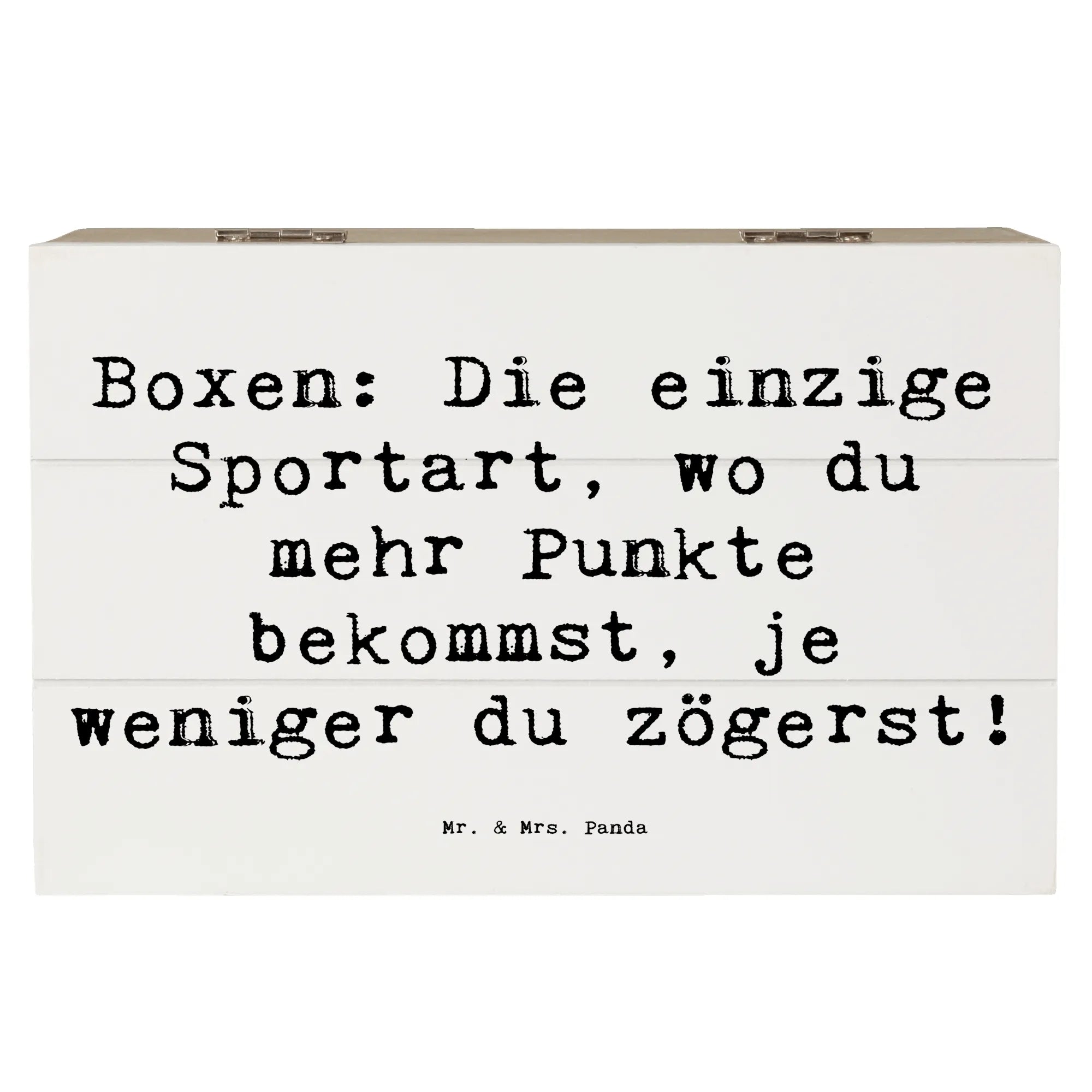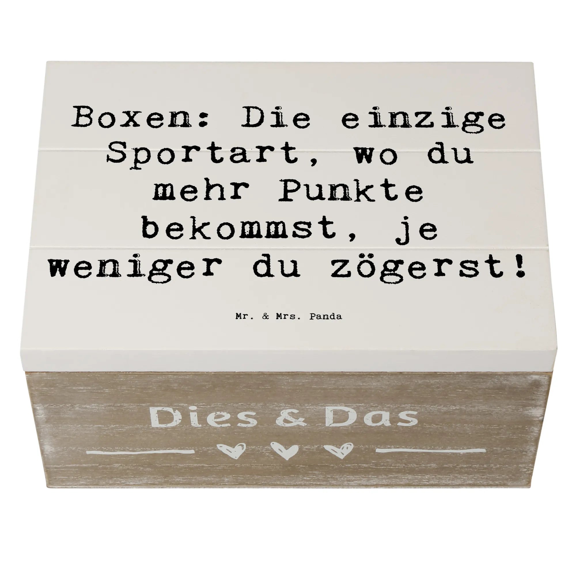 Die wunderschöne Holzkiste von Mr. & Mrs. Panda ist das perfekte Geschenk für alle Sportliebhaber! Mit dem motivierenden Spruch "Boxen: Die einzige Sportart, wo du mehr Punkte bekommst, je weniger du zögerst!" bringt diese einzigartige Erinnerungskiste nicht nur Stil, sondern auch Spaß in jedes Zuhause.
