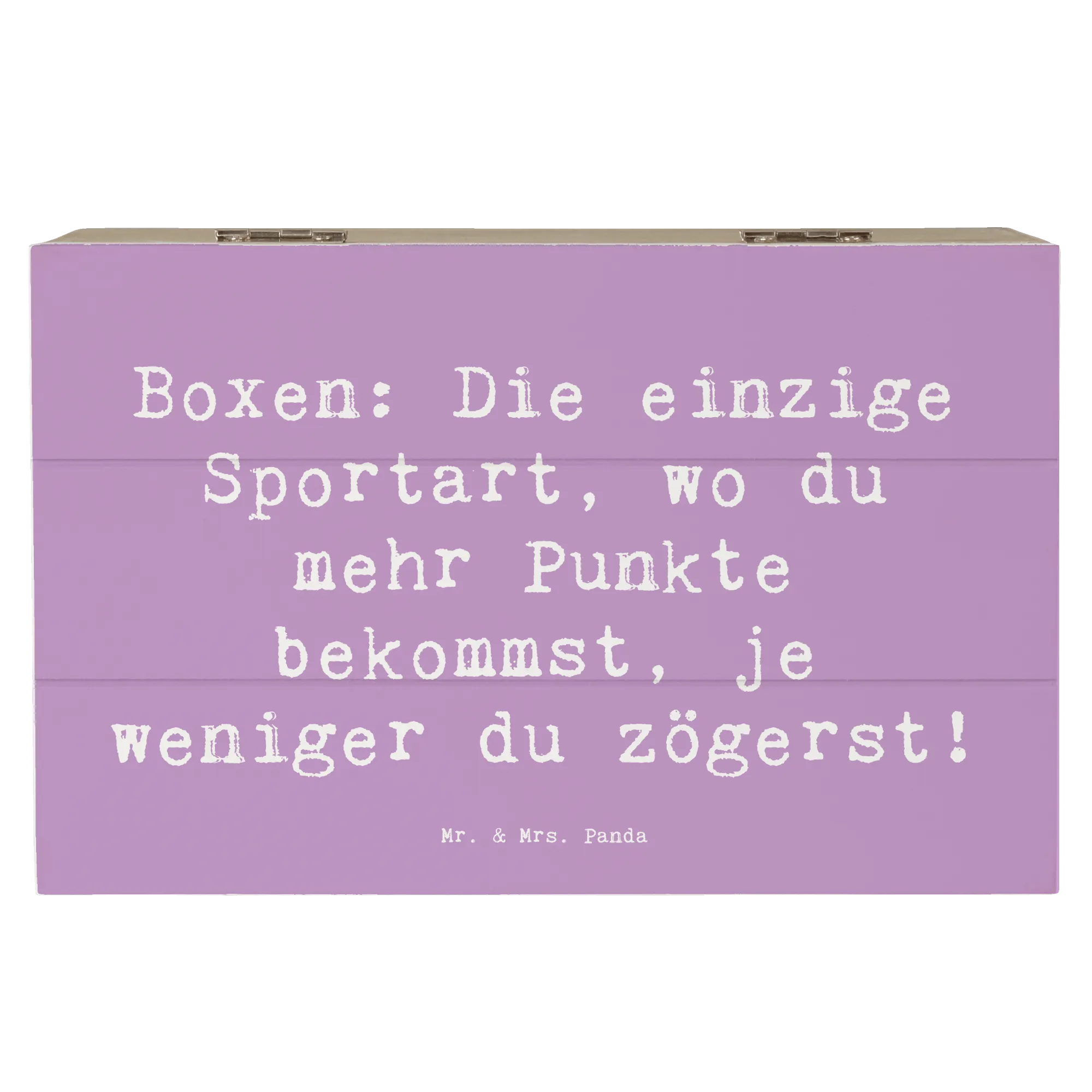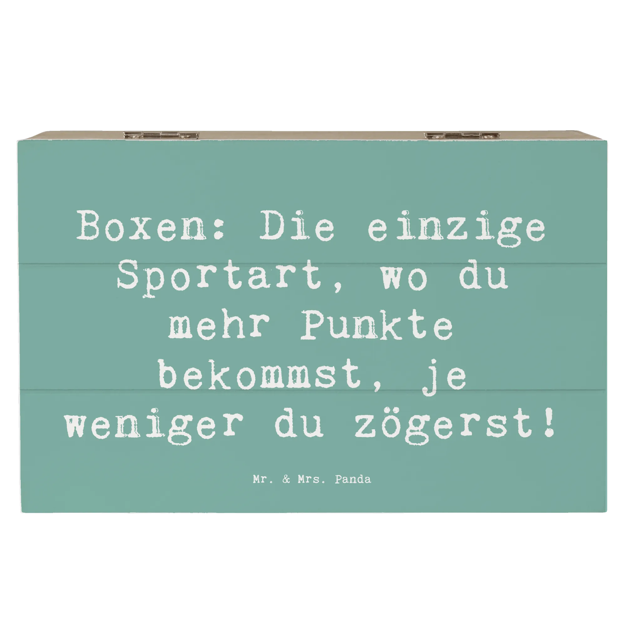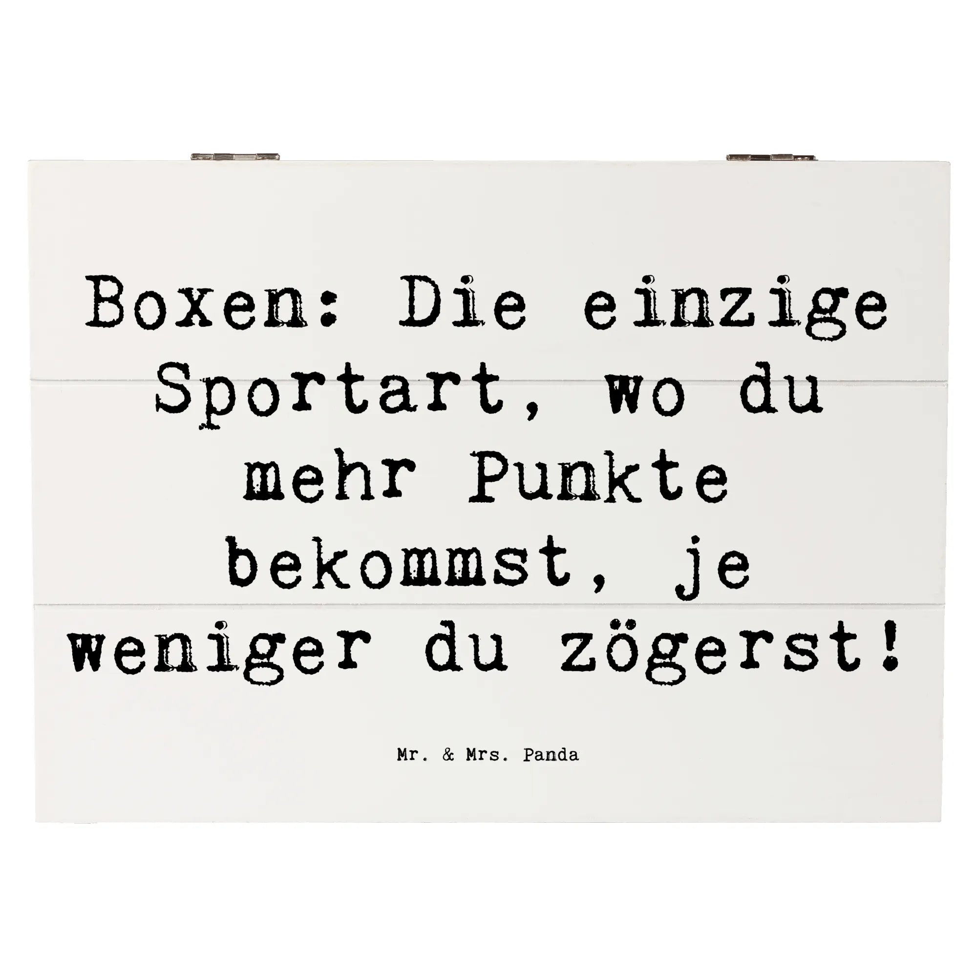 Die wunderschöne Holzkiste von Mr. & Mrs. Panda ist das perfekte Geschenk für alle Sportliebhaber! Mit dem motivierenden Spruch "Boxen: Die einzige Sportart, wo du mehr Punkte bekommst, je weniger du zögerst!" bringt diese einzigartige Erinnerungskiste nicht nur Stil, sondern auch Spaß in jedes Zuhause.