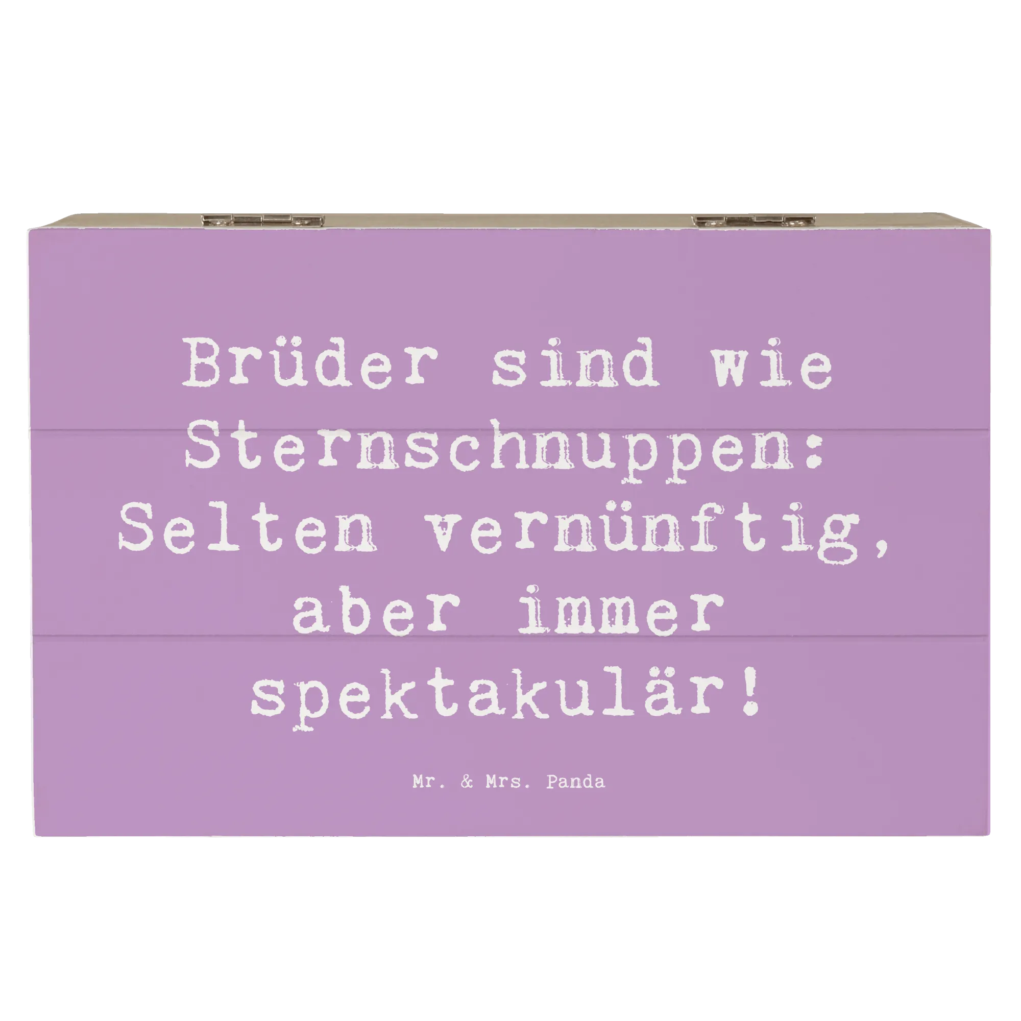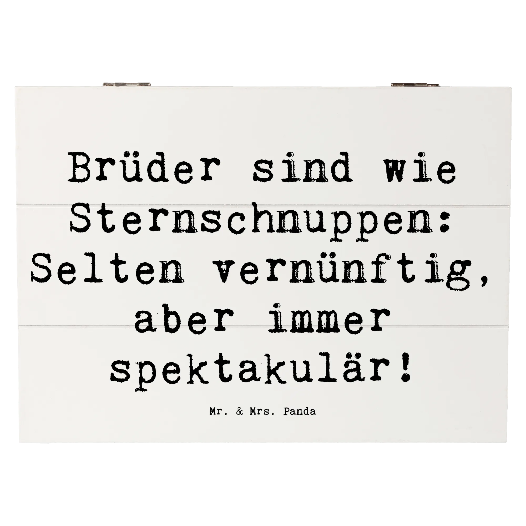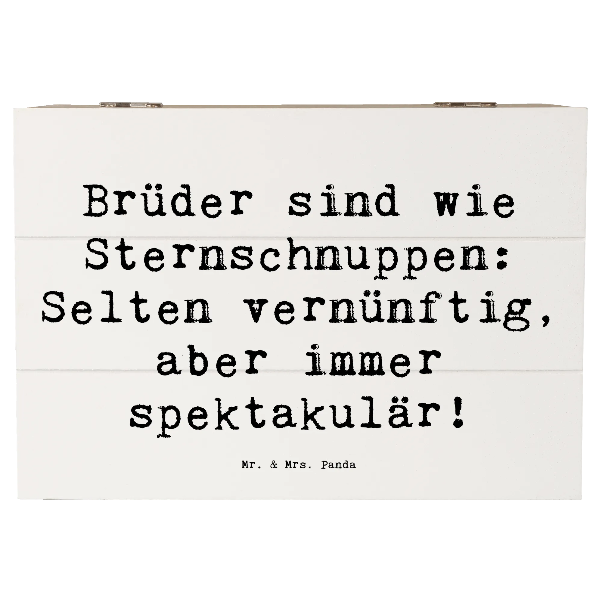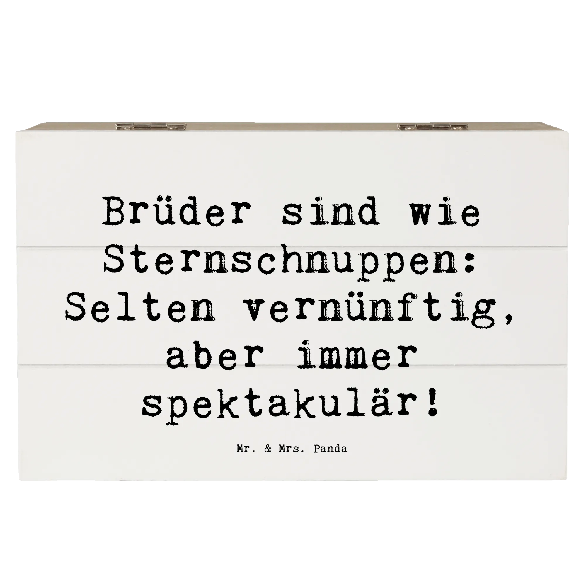 Mit dem Spruch "Brüder sind wie Sternschnuppen: Selten vernünftig, aber immer spektakulär!" lässt sich diese Kiste spielend leicht an die besondere Beziehung zu deinem Bruder anpassen. Die Holzkiste, gefertigt aus robuster Holzfaser, ist nicht nur stabil, sondern auch ein echter Hingucker in jedem Raum.