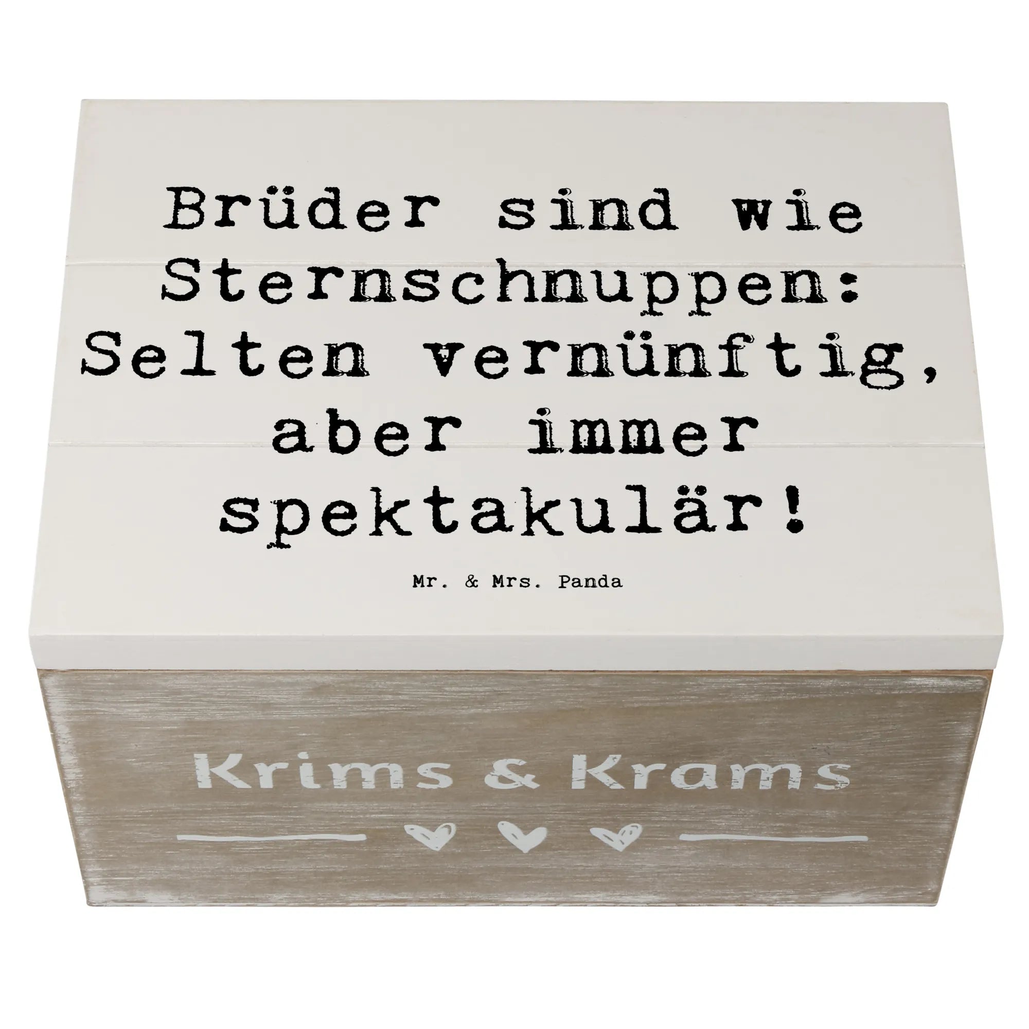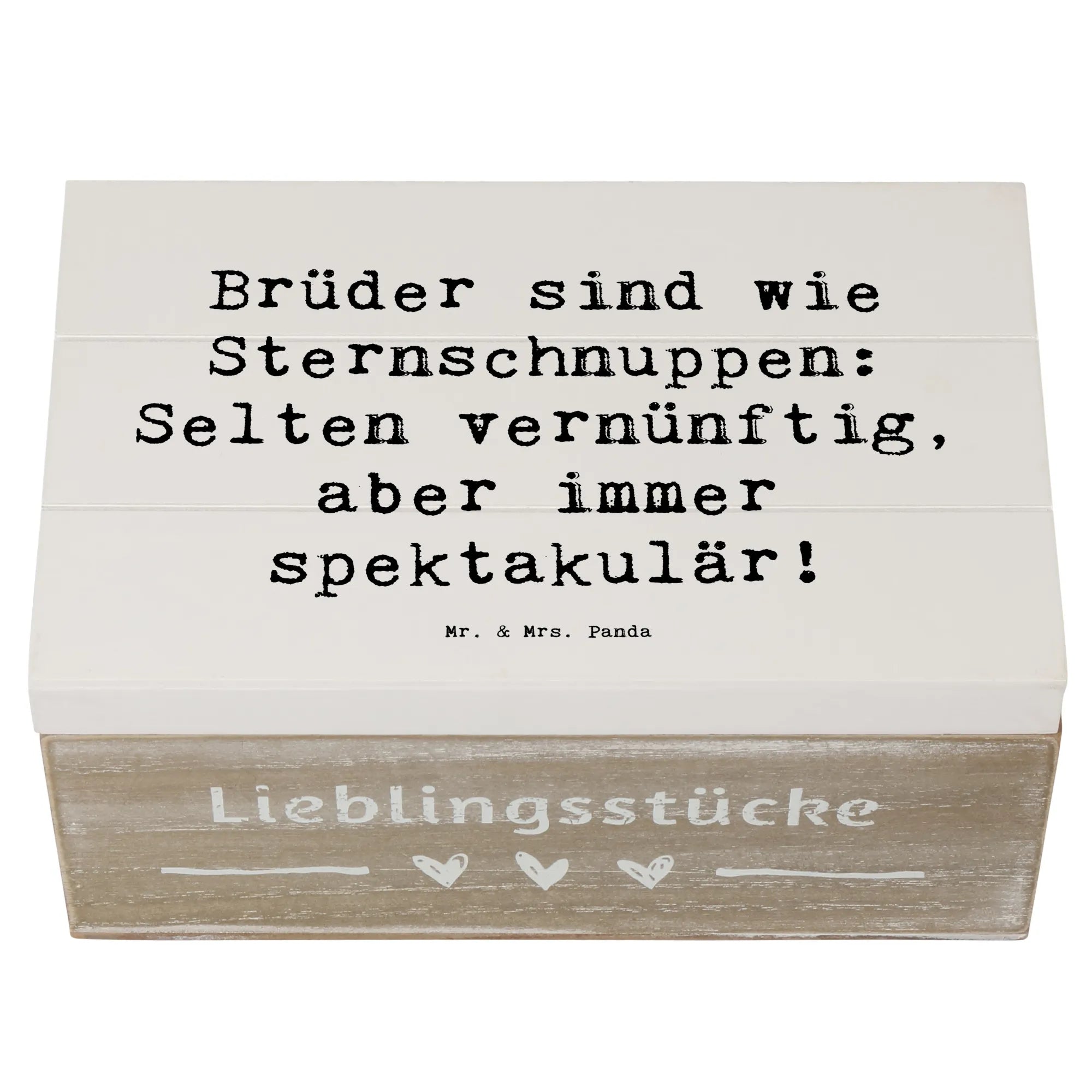 Entdecke die wundervolle Holzkiste "Bruder" von Mr. & Mrs. Panda! Diese einzigartige Kiste ist mehr als nur ein Aufbewahrungsort – sie ist ein ganz besonderes Geschenk für deinen Bruder.