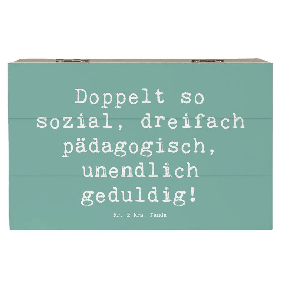 Holzkiste Spruch Doppelt so sozial, dreifach pädagogisch, unendlich geduldig! - 19 x 12 cm - Meeresbrise