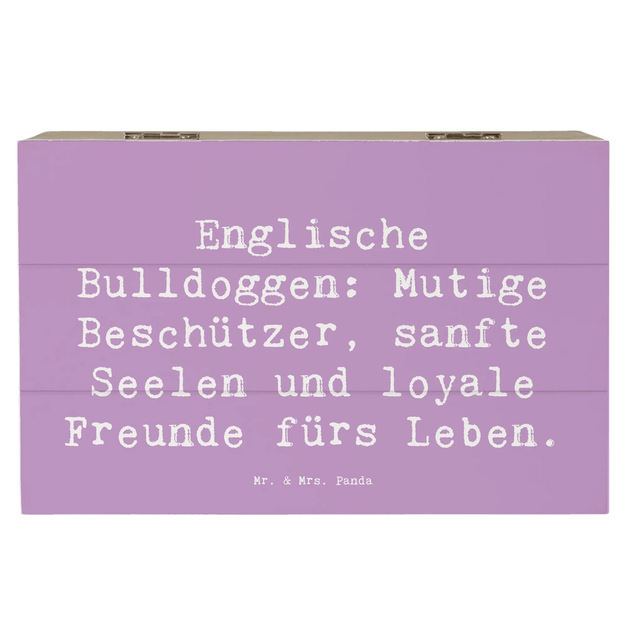 Die wunderschöne Holzkiste von Mr. & Mrs. Panda, bedruckt mit dem niedlichen Motiv der Englischen Bulldogge, ist das perfekte Geschenk für Hundefans und Liebhaber dieser außergewöhnlichen Rasse. Ob als Aufbewahrungsort für Erinnerungen oder als schicke Dekokiste – diese Schatzkiste ist ein wahres Multitalent!