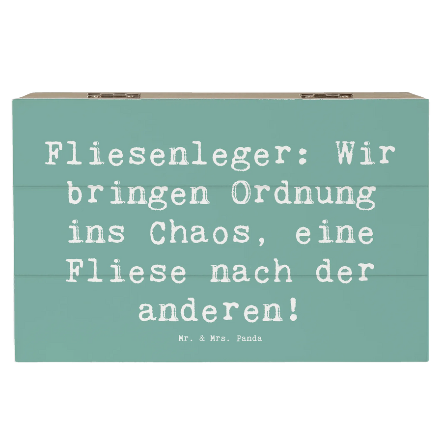 Die wunderschöne Holzkiste von Mr. & Mrs. Panda mit dem einzigartigen Design "Fliesenleger: Wir bringen Ordnung ins Chaos, eine Fliese nach der anderen!" ist das perfekte Geschenk für alle, die im Bau- und Fliesenhandwerk tätig sind oder eine tiefe Leidenschaft dafür haben.