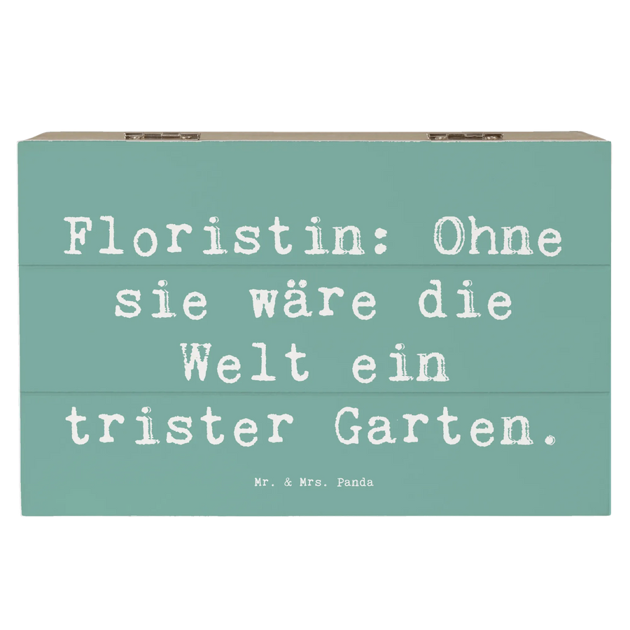 Die wunderschöne Holzkiste von Mr. & Mrs. Panda ist das perfekte Geschenk für Floristen und alle Blumenliebhaber. Mit dem bezaubernden Spruch "Floristin: Ohne sie wäre die Welt ein trister Garten." bringt diese Kiste nicht nur Freude, sondern auch die Wertschätzung für den Beruf der Floristin zum Ausdruck.