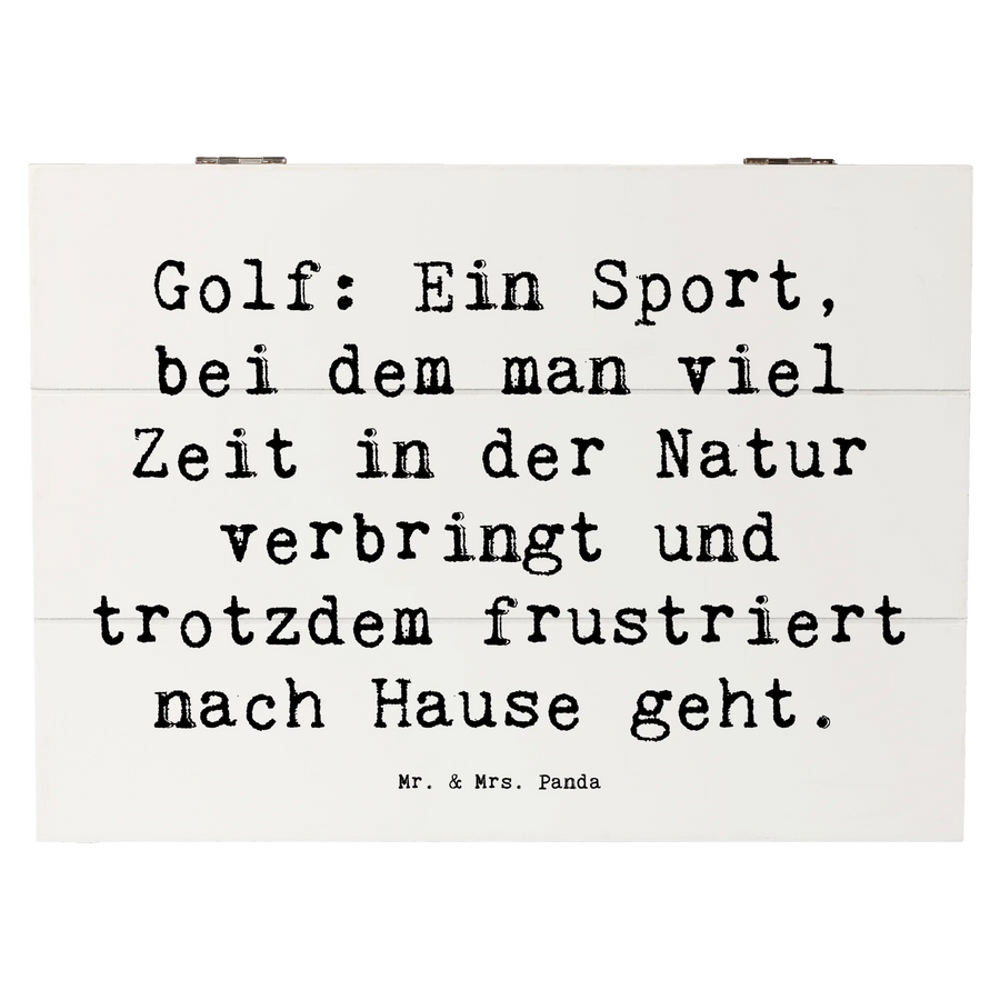 Die wunderschöne Holzkiste von Mr. & Mrs. Panda ist das perfekte Geschenk für alle Golf-Fans und Sportliebhaber! Mit ihrem einzigartigen Design und dem herzlichen Spruch "Golf: Ein Sport, bei dem man viel Zeit in der Natur verbringt und trotzdem frustriert nach Hause geht." ist sie nicht nur eine dekorative Aufbewahrungslösung, sondern auch ein liebevolles Erinnerungsstück für besondere Momente.