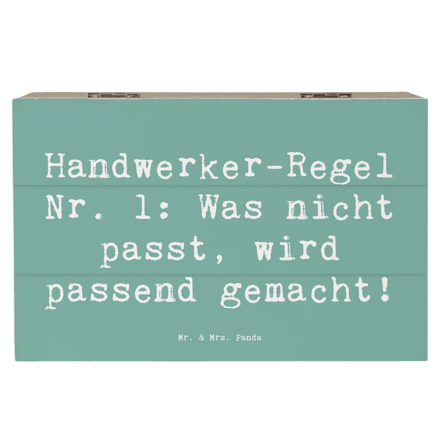 Entdecke die perfekte Holzkiste aus der Berufe-Kollektion von Mr. & Mrs. Panda! Diese wunderschöne, robuste Kiste ist nicht nur ein praktischer Aufbewahrungsort für all deine Schätze, sondern auch eine liebevolle Hommage an die Welt der Handwerker. Mit dem einzigartigen Spruch "Handwerker-Regel Nr. 1: Was nicht passt, wird passend gemacht!" ist diese Kiste ein echter Hingucker und sorgt für ein Schmunzeln.