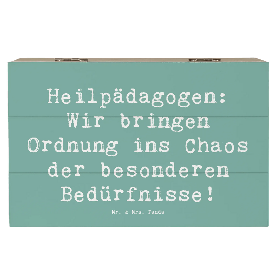 Die wunderschöne Holzkiste von Mr. & Mrs. Panda ist das perfekte Geschenk für alle Heilpädagogen und Heilpädagoginnen! Mit dem fröhlichen Spruch "Heilpädagogen: Wir bringen Ordnung ins Chaos der besonderen Bedürfnisse!" wird diese Kiste nicht nur zum praktischen Aufbewahrungsort, sondern auch zu einem liebevollen Erinnerungsstück.