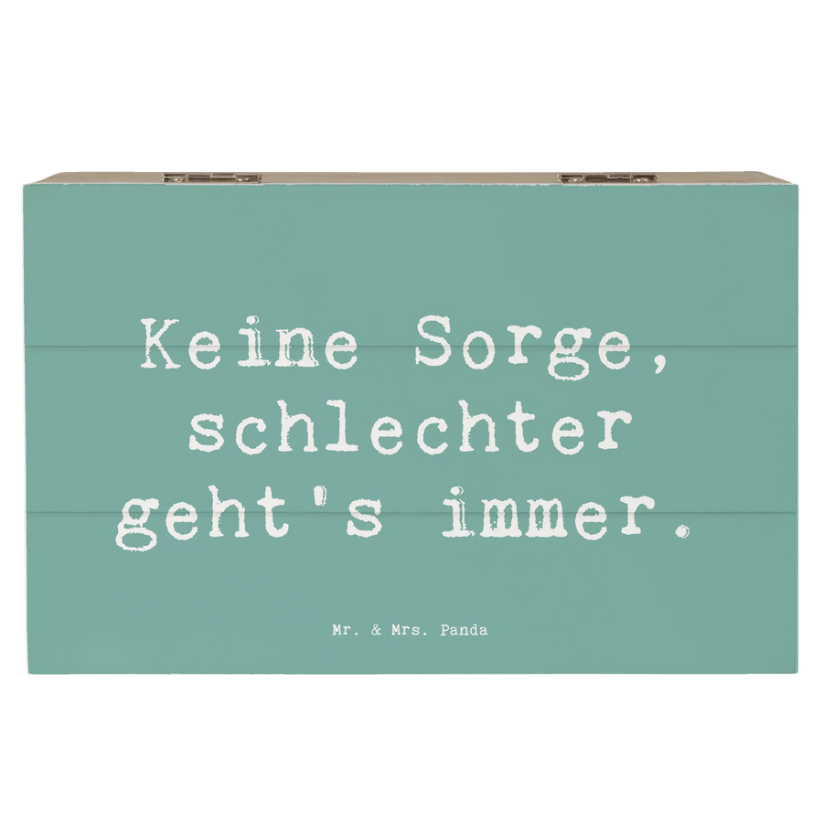 Mit einem ansprechenden Design und dem motivierenden Spruch 'Keine Sorge, schlechter geht's immer' bringt sie ein Lächeln in die düstersten Tage. Diese robuste Kiste ist nicht nur eine attraktive Dekoration, sondern auch eine praktische Aufbewahrungslösung für deine wertvollen Schätze.