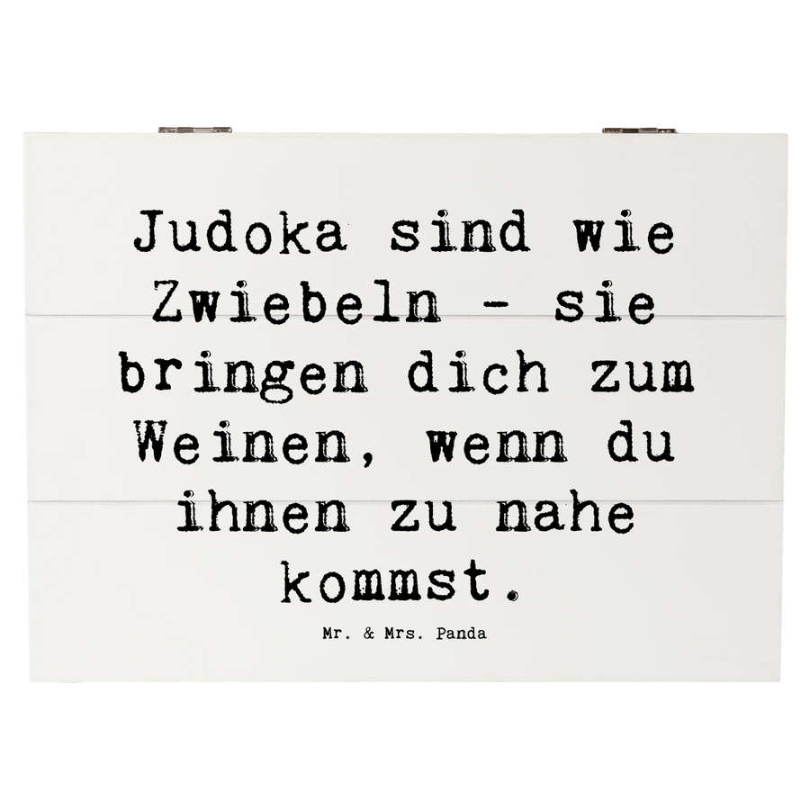 Entdecke die zauberhafte Holzkiste von Mr. & Mrs. Panda, die perfekt für alle Sportbegeisterten ist! Diese wunderschöne Kiste ist nicht nur ein praktischer Aufbewahrungsort für all deine Schätze, sondern auch eine Erinnerung an die aufregenden Momente im Judo. Mit dem liebevollen Slogan 'Judoka sind wie Zwiebeln - sie bringen dich zum Weinen, wenn du ihnen zu nahe kommst' verleiht sie deiner Sammlung eine persönliche Note.