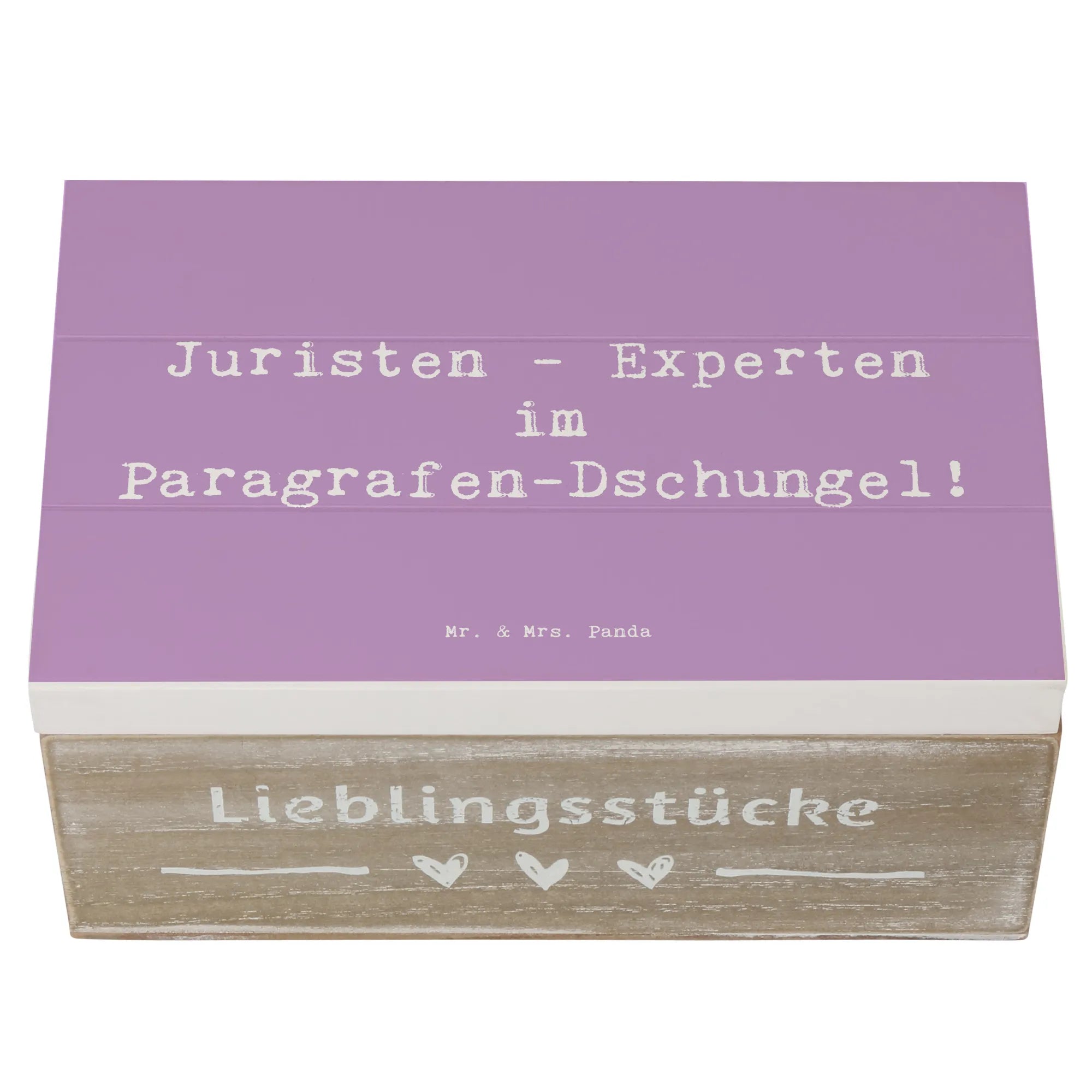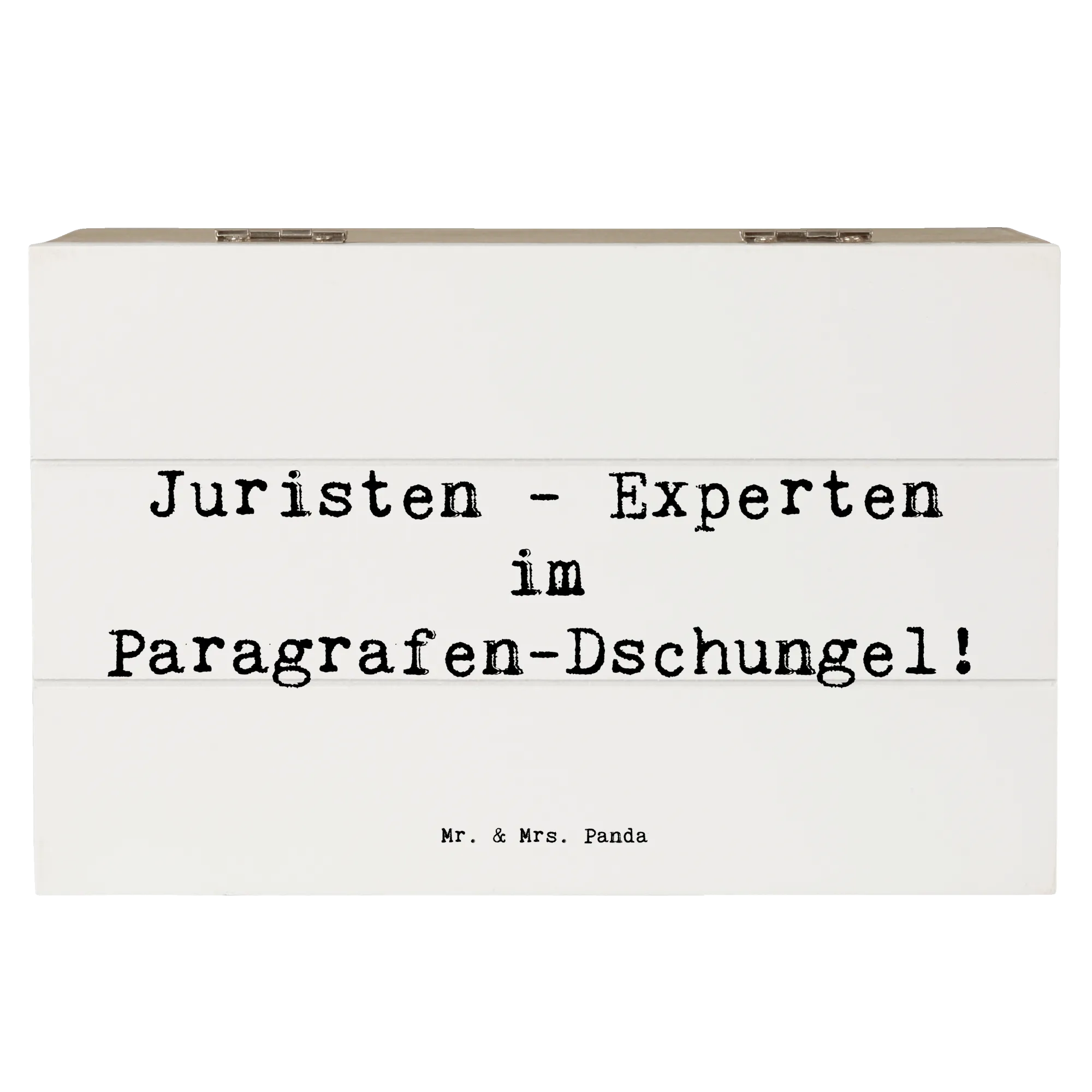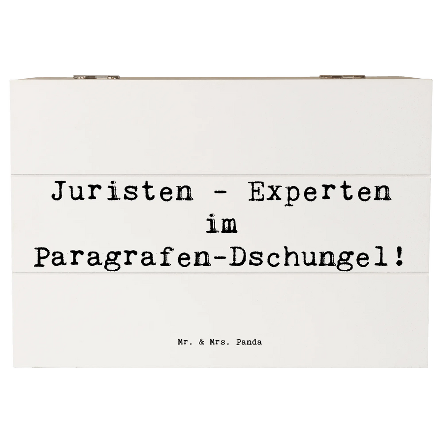 Die Holzkiste von Mr. & Mrs. Panda mit dem liebevollen Motiven "Jurist – Experten im Paragrafen-Dschungel!" ist das ideale Geschenk für Juristen, frischgebackene Rechtsanwälte oder einfach alle, die das Recht lieben.