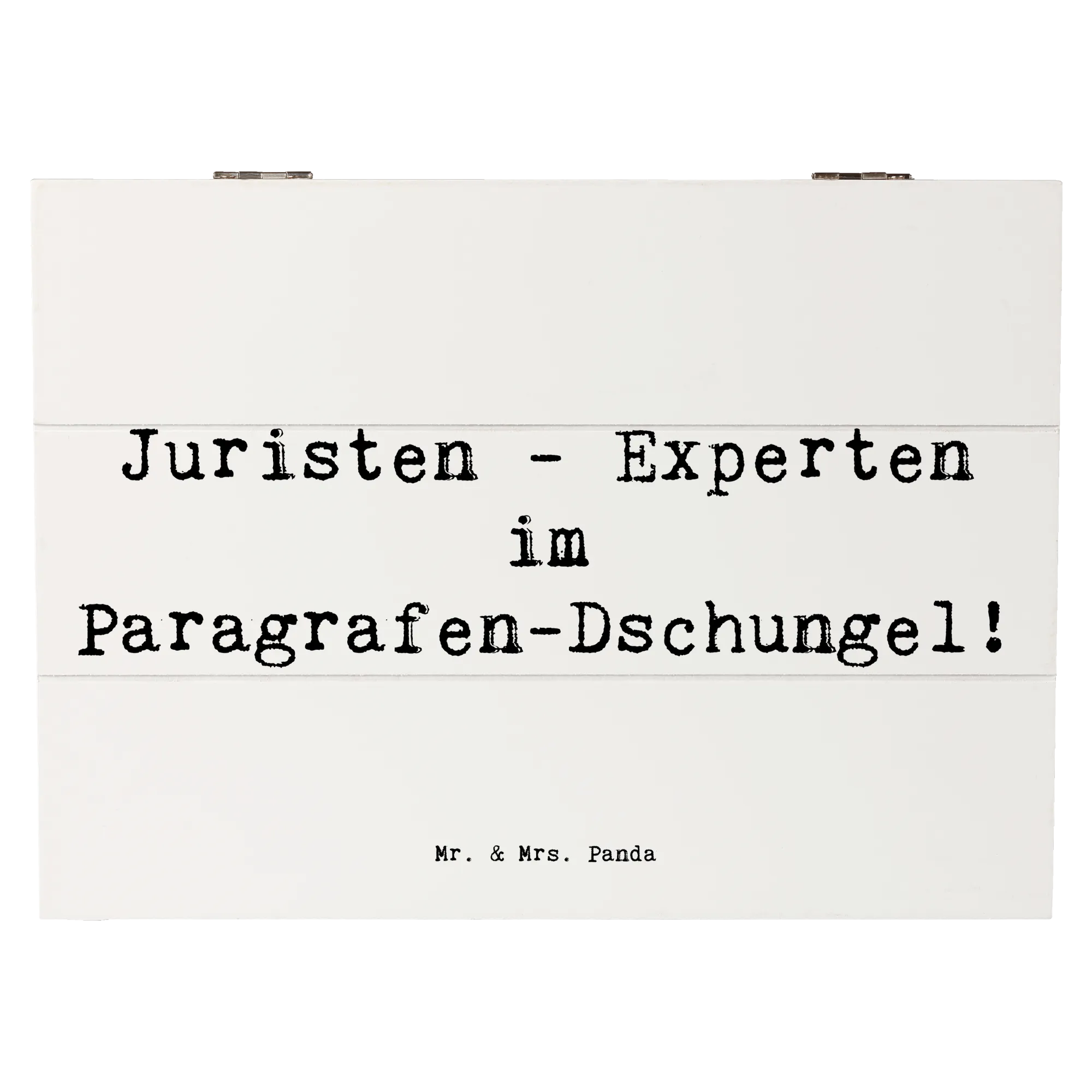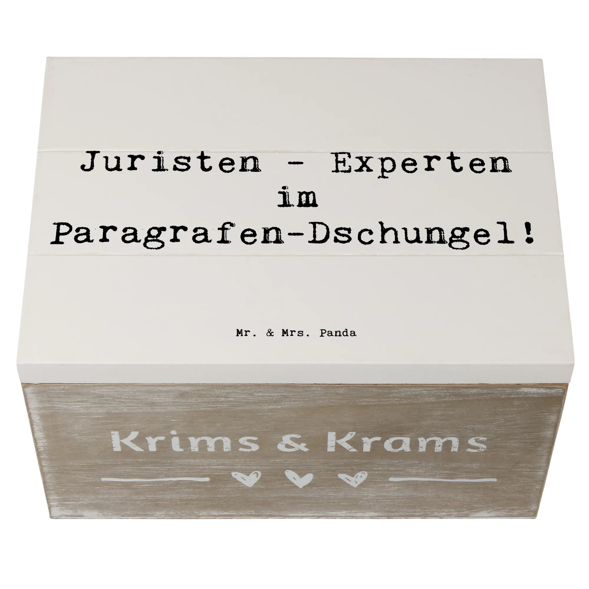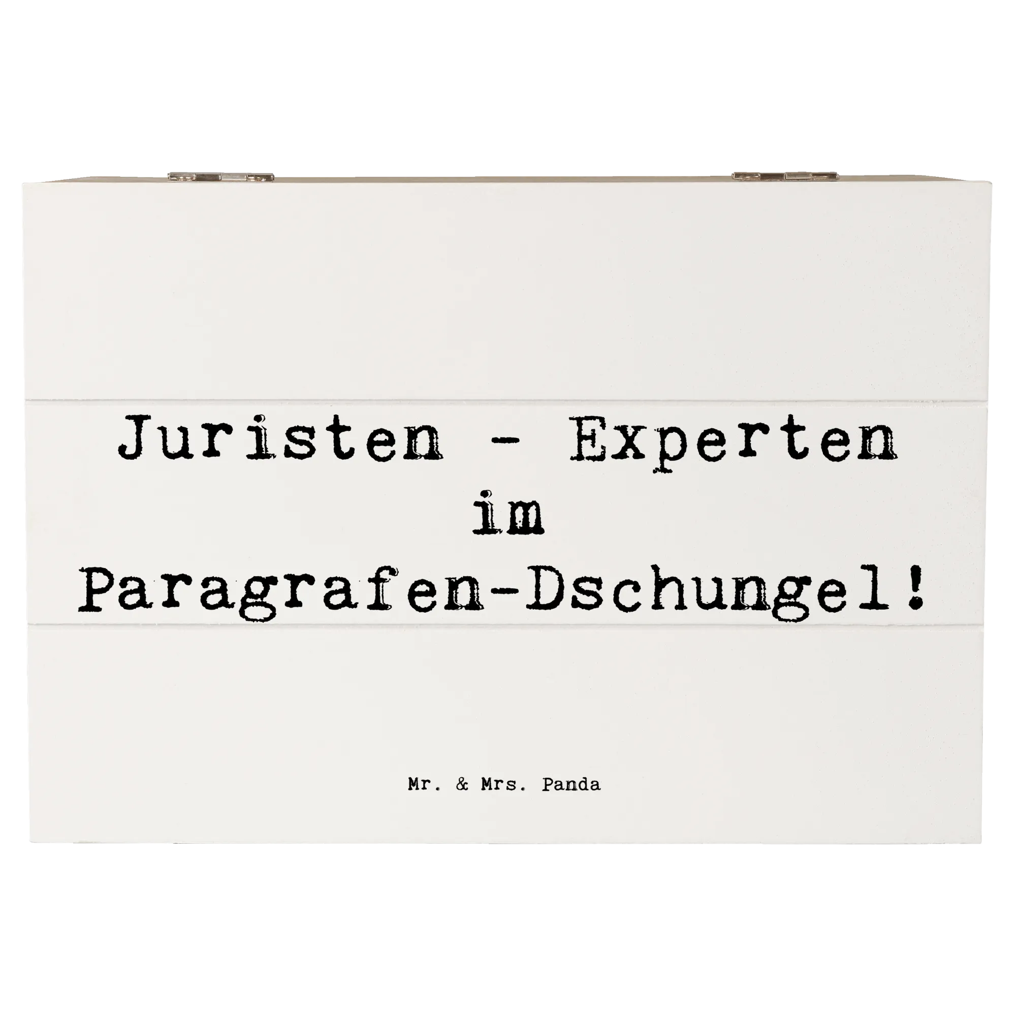 Die Holzkiste von Mr. & Mrs. Panda mit dem liebevollen Motiven "Jurist – Experten im Paragrafen-Dschungel!" ist das ideale Geschenk für Juristen, frischgebackene Rechtsanwälte oder einfach alle, die das Recht lieben.
