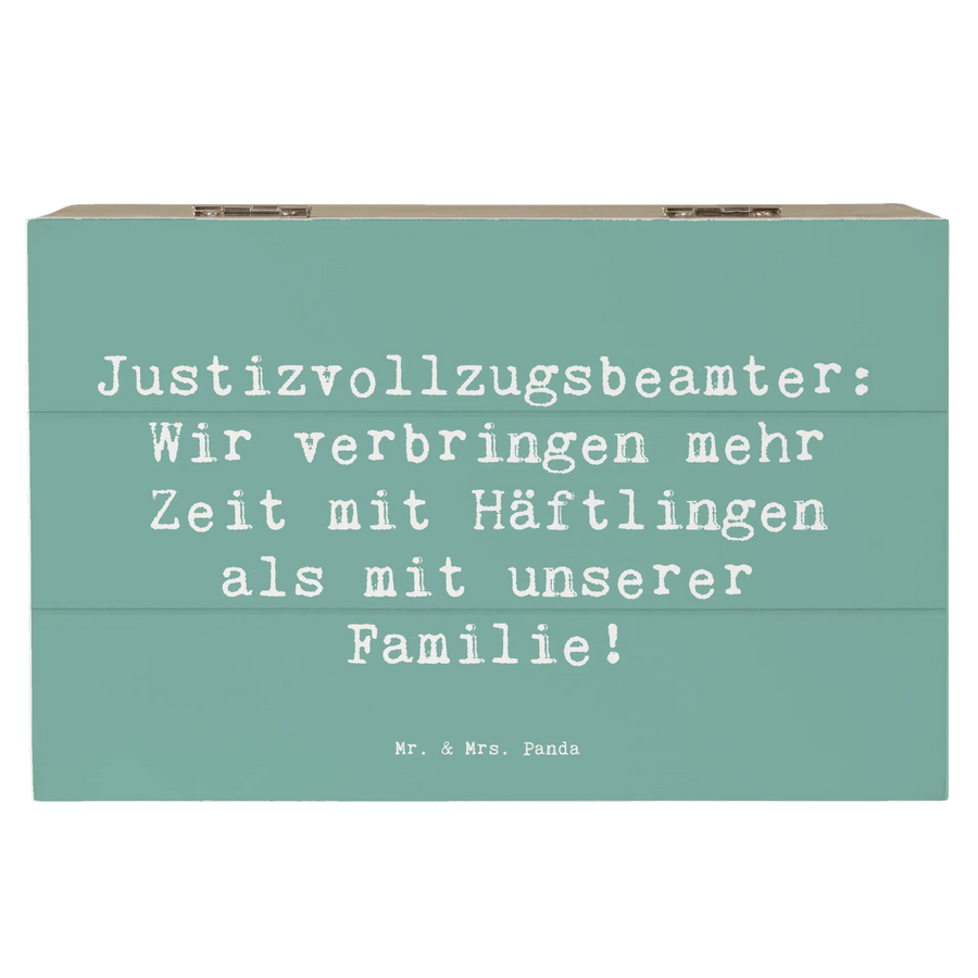 Die wunderschöne Holzkiste von Mr. & Mrs. Panda mit dem Spruch "Justizvollzugsbeamter: Wir verbringen mehr Zeit mit Häftlingen als mit unserer Familie!" ist das perfekte Geschenk für alle, die im Justizvollzugswesen arbeiten oder einfach nur eine humorvolle Erinnerung an ihren Beruf haben möchten.