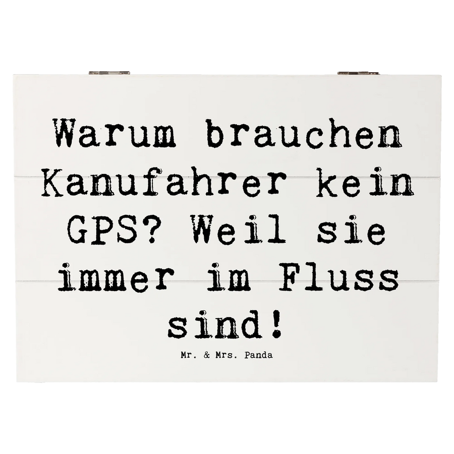 Die wunderschöne Holzkiste von Mr. & Mrs. Panda ist das perfekte Geschenk für alle Sport- und Kanu-Enthusiasten. Mit ihrem einzigartigen Motiv und dem witzigen Spruch 'Warum brauchen Kanufahrer kein GPS? Weil sie immer im Fluss sind!' ist sie nicht nur ein schicker Hingucker, sondern auch ein praktischer Aufbewahrungsort für all deine besonderen Erinnerungen.