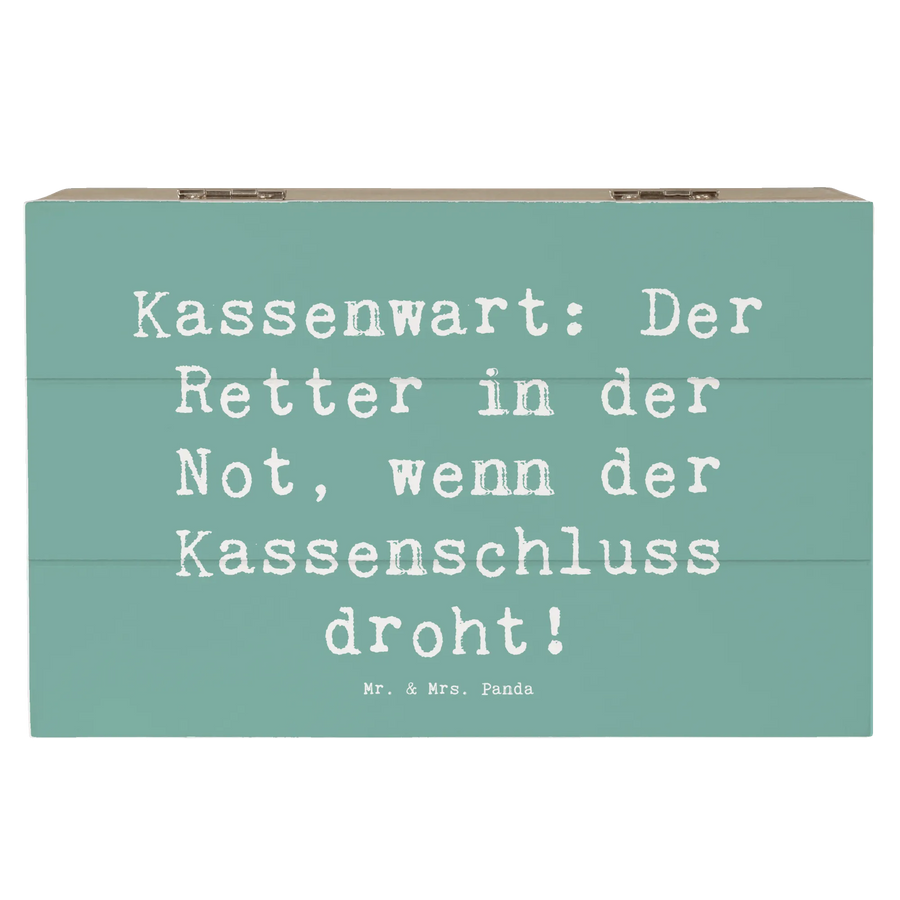 Holzkiste Spruch Kassenwart: Der Retter in der Not, wenn der Kassenschluss droht! - 19 x 12 cm - Meeresbrise