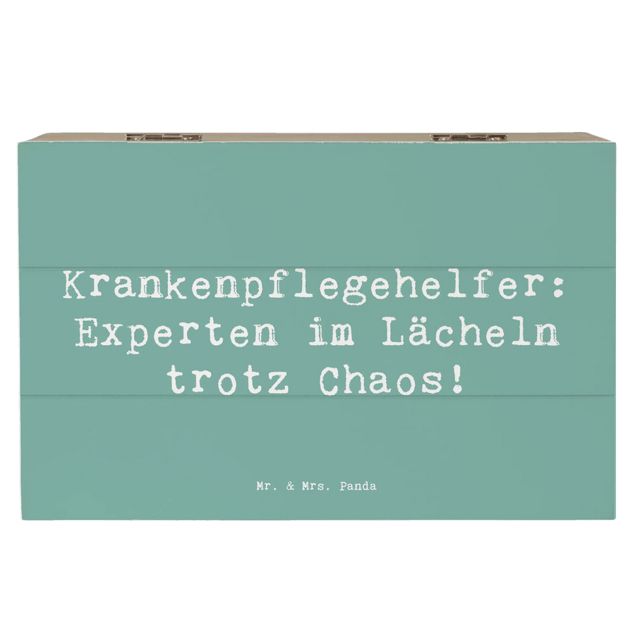 Die Holzkiste 'Krankenpflegehelfer' von Mr. & Mrs. Panda ist nicht nur eine schöne Dekoration, sondern auch ein ganz besonderes Geschenk für all jene, die im Bereich der Pflege arbeiten. Jedes Detail dieser Kiste wurde mit viel Liebe zum Beruf gestaltet. Die Kiste trägt den inspirierenden Spruch: 'Krankenpflegehelfer: Experten im Lächeln trotz Chaos!', der nicht nur die tägliche Herausforderung in diesem Beruf anerkennt, sondern auch die Freude, die Pflegekräfte in das Leben anderer bringen.