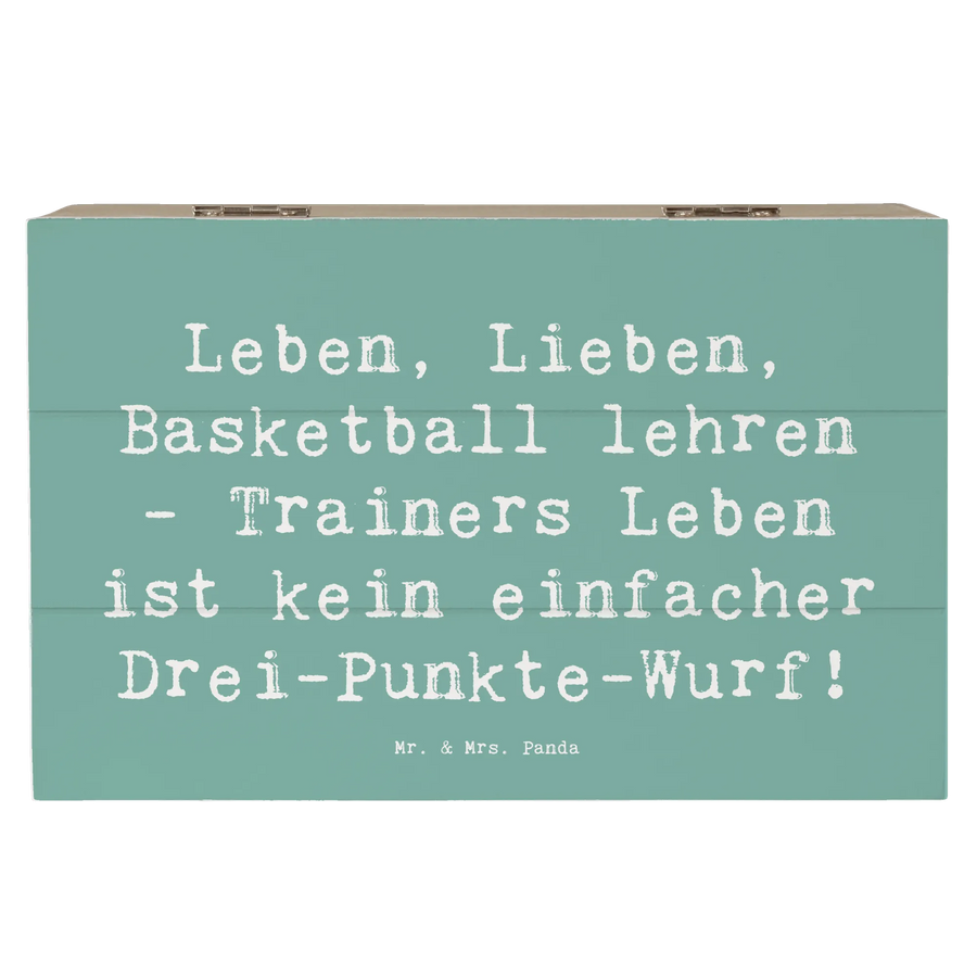 Holzkiste Spruch Leben, Lieben, Basketball lehren - Trainers Leben ist kein einfacher Drei-Punkte-Wurf! - 19 x 12 cm - Meeresbrise