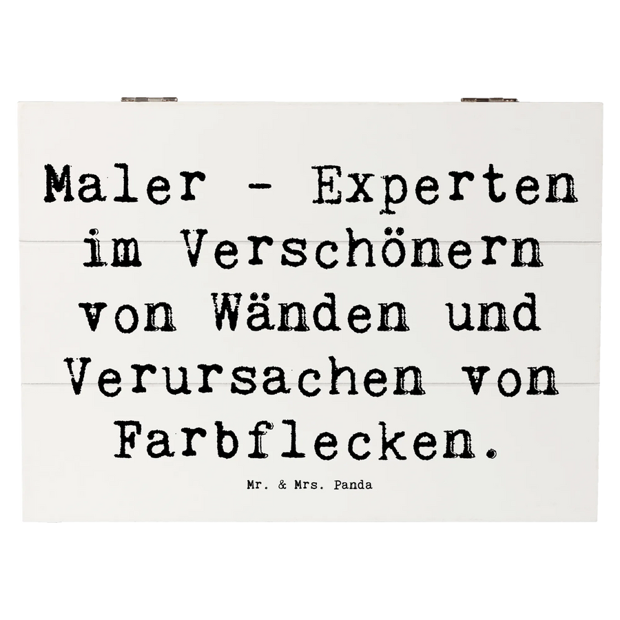 Entdecke die wunderbare Holzkiste von Mr. & Mrs. Panda, perfekt für alle, die das Malerhandwerk lieben! Diese zauberhafte Erinnerungskiste mit dem Spruch "Maler - Experten im Verschönern von Wänden und Verursachen von Farbflecken." ist nicht nur für Maler ideal, sondern auch für kreative Seelen, die Freude an ihrer Arbeit haben.