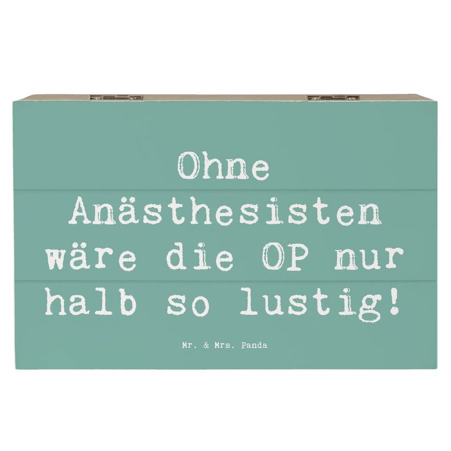 Die Holzkiste mit dem motivierenden Spruch 'Ohne Anästhesisten wäre die OP nur halb so lustig!' ist das perfekte Geschenk für Anästhesisten und medizinische Fachkräfte. Diese wunderschöne Holzkiste von Mr. & Mrs. Panda ist nicht nur ein idealer Aufbewahrungsort für Erinnerungen, sondern auch ein liebevolles Geschenk zur Anerkennung ihrer wichtigen Arbeit im Gesundheitswesen.