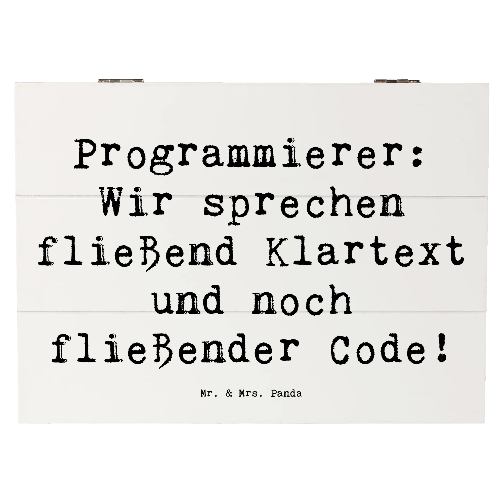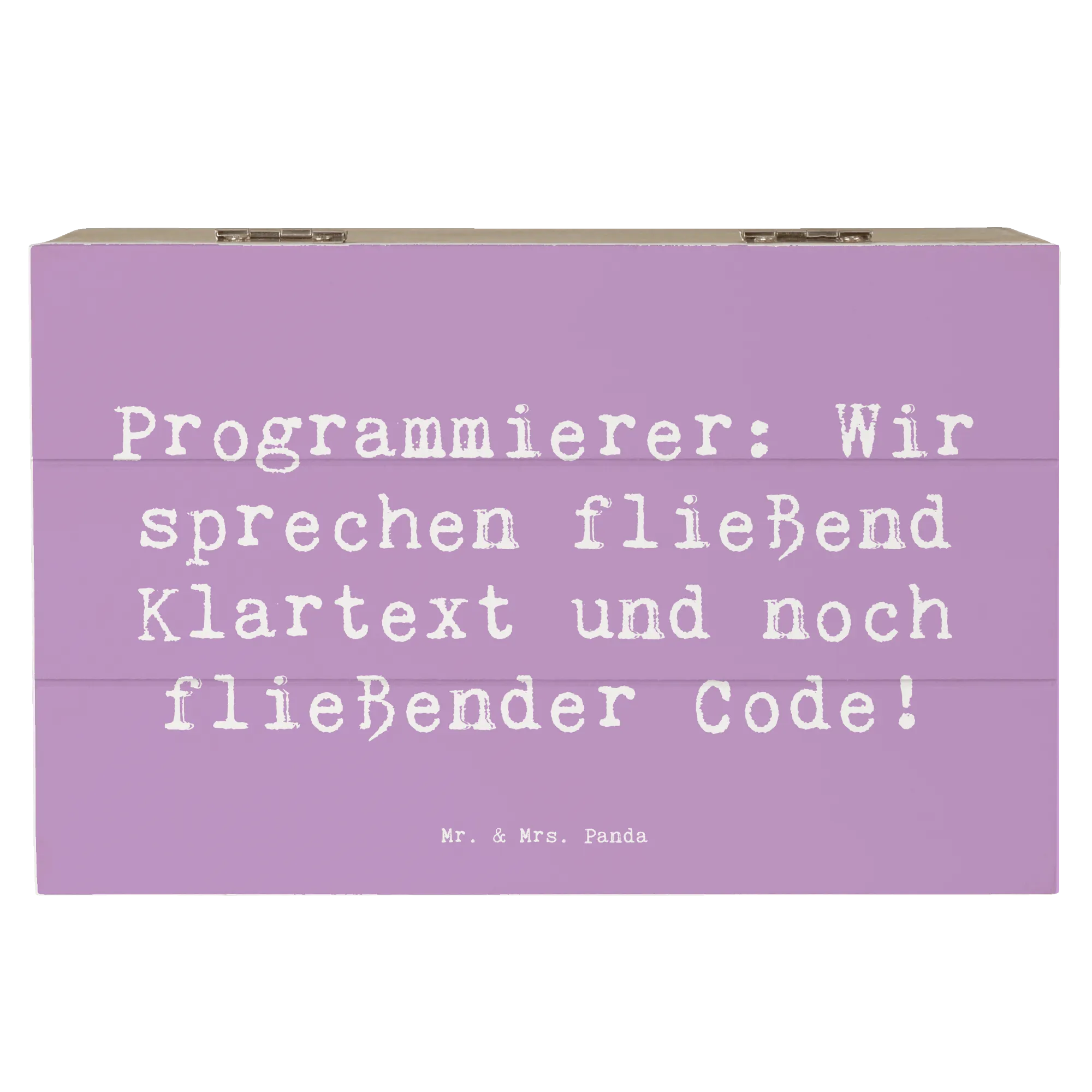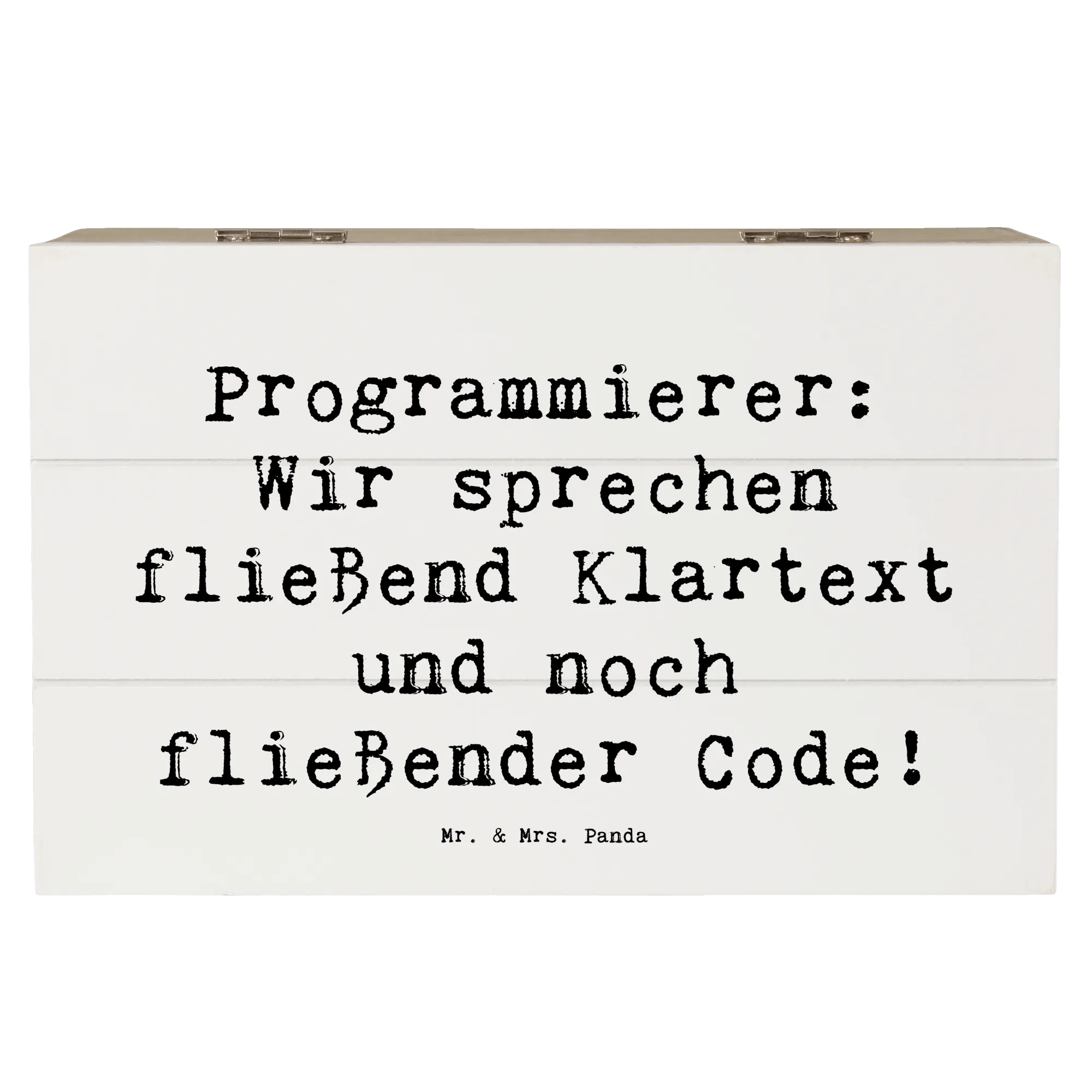 Die wunderschöne Holzkiste von Mr. & Mrs. Panda ist das perfekte Geschenk für alle Programmierer und IT-Profis! Mit ihrem liebevoll gestalteten Motiv und dem inspirierenden Spruch "Programmierer: Wir sprechen fließend Klartext und noch fließender Code!" bringt sie ein Lächeln auf die Gesichter der kreativen Köpfe in der Tech-Welt.