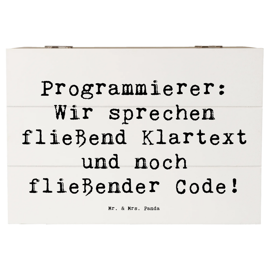 Suchst du nach dem perfekten Geschenk für einen Programmierer? Dann ist die wunderschöne Holzkiste von Mr. & Mrs. Panda genau das Richtige für dich! Diese besondere Kiste ist nicht nur ein stilvolles Aufbewahrungsstück, sondern auch eine tolle Erinnerung für alle, die in der IT-Branche tätig sind oder sich für Programmiersprachen begeistern. "Programmierer: Wir sprechen fließend Klartext und noch flüssiger Code!" – dieser witzige Spruch ziert die Kiste und bringt garantiert ein Lächeln auf das Gesicht des beschenkten Programmierers.