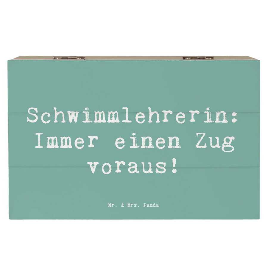 Die wunderschöne Holzkiste mit dem Motiv "Schwimmlehrerin: Immer einen Zug voraus!" von Mr. & Mrs. Panda ist das perfekte Geschenk für alle engagierten Schwimmlehrerinnen!