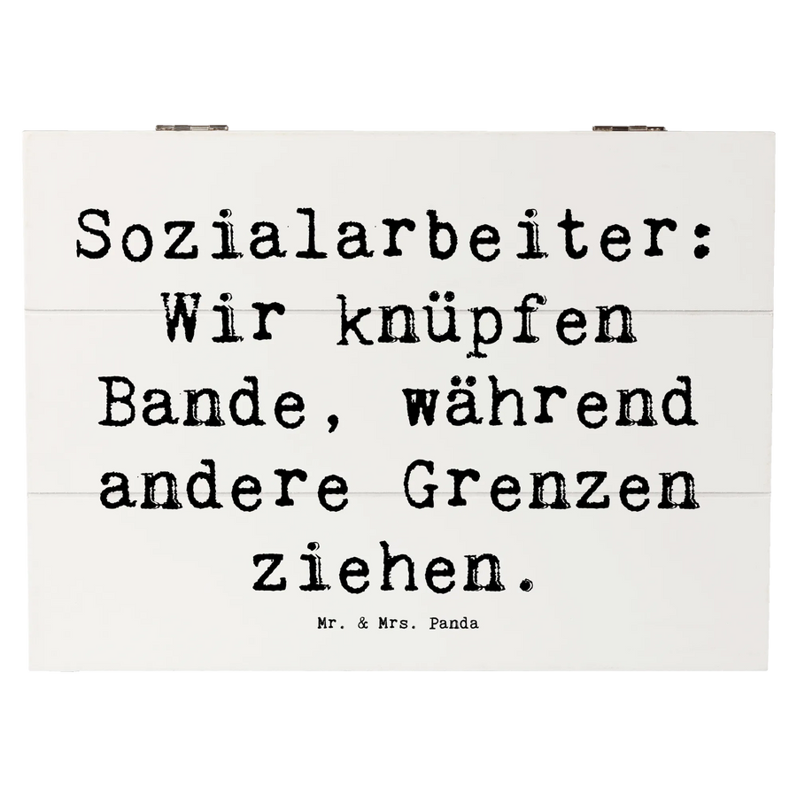 Entdecke die wunderschöne Holzkiste von Mr. & Mrs. Panda, die perfekt für all die wertvollen Erinnerungen ist, die Du sammelst. Mit einem liebevoll gestalteten Motiv für Sozialarbeiterinnen und dem inspirierenden Spruch „Sozialarbeiter: Wir knüpfen Bande, während andere Grenzen ziehen.“ ist diese Kiste nicht nur ein praktischer Aufbewahrungsort, sondern auch ein bedeutungsvolles Geschenk für all diejenigen, die jeden Tag daran arbeiten, die Welt ein kleines Stück besser zu machen.