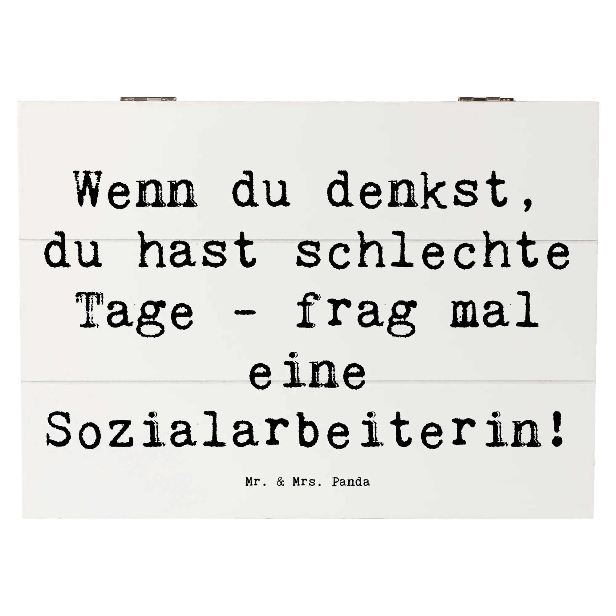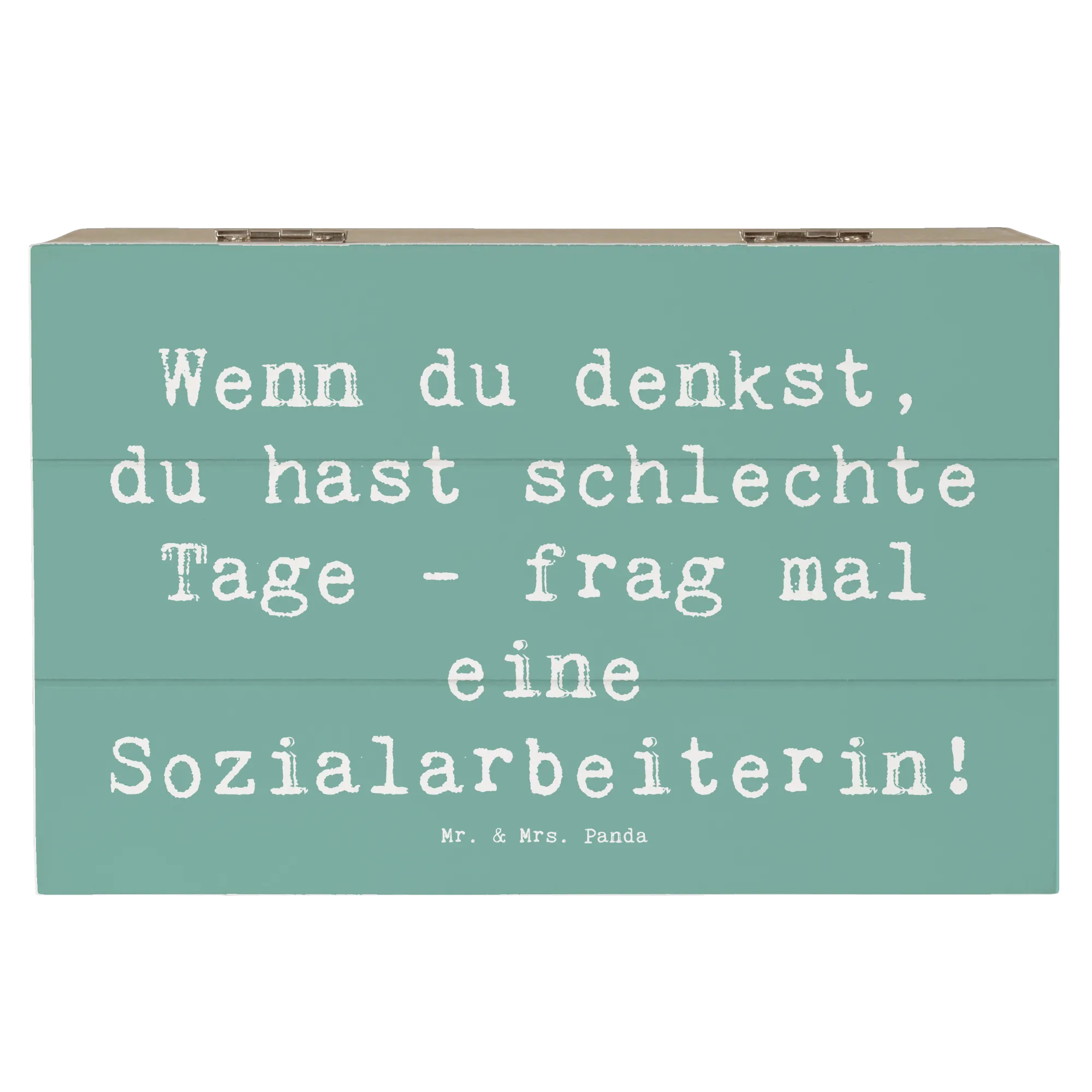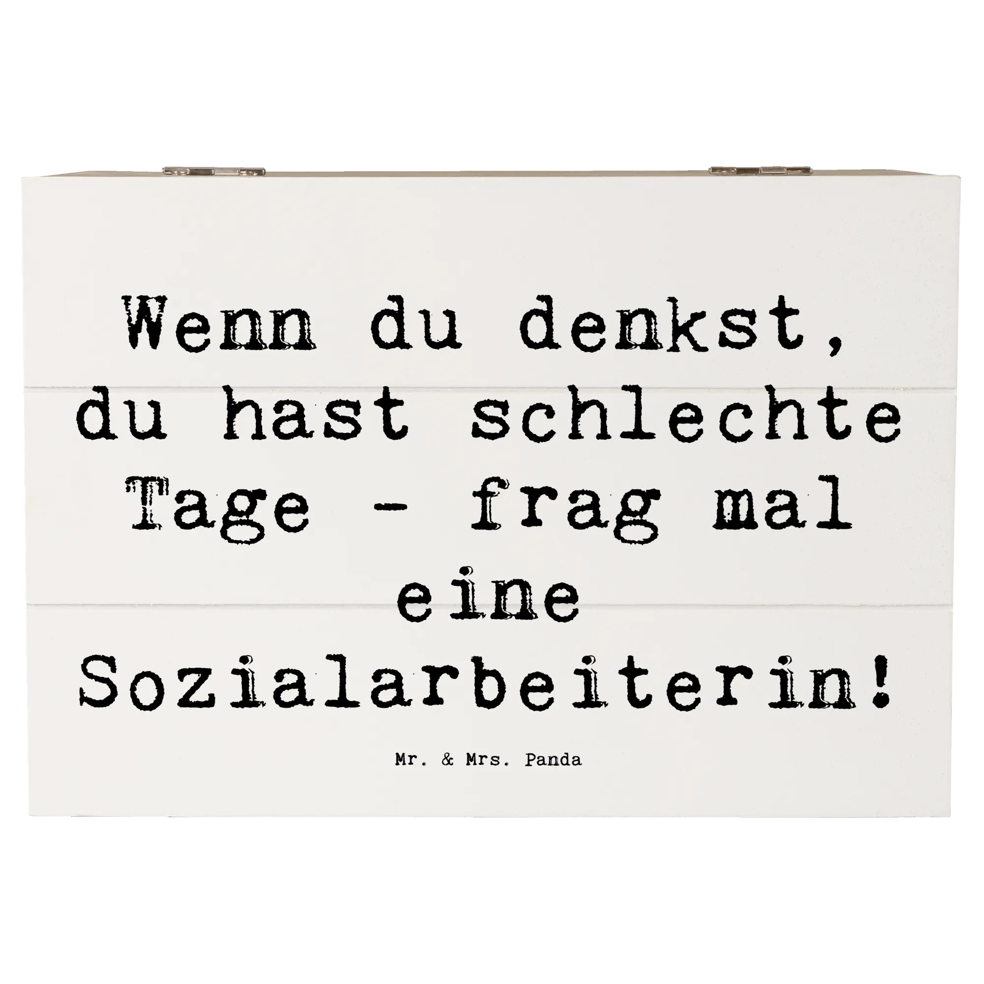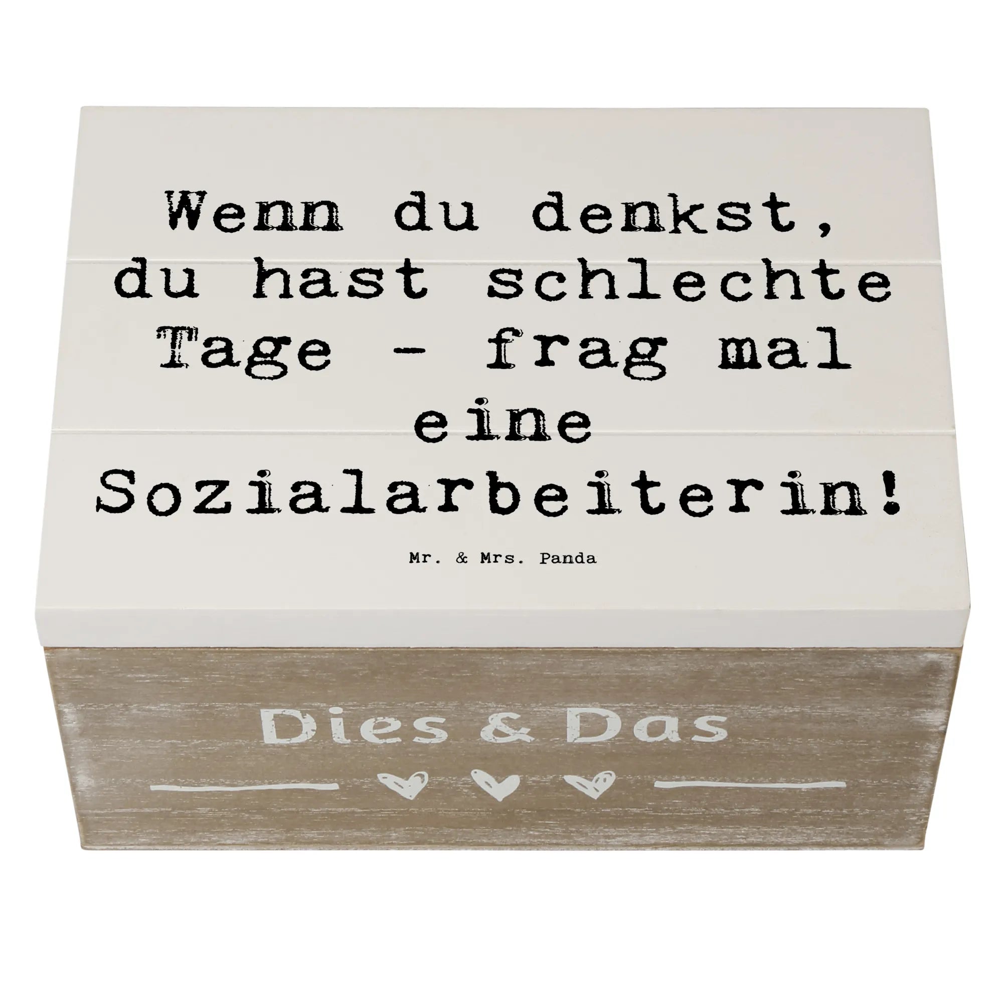 Entdecke die perfekte Holzkiste für Sozialarbeiterinnen von Mr. & Mrs. Panda! Diese liebevoll gestaltete Kiste ist nicht nur ein bezauberndes Aufbewahrungsort für die besonderen Schätze deines Lebens, sondern auch das ideale Geschenk für alle, die in diesem wichtigen Beruf tätig sind. Mit dem inspirierenden Spruch: "Wenn du denkst, du hast schlechte Tage - frag mal eine Sozialarbeiterin!" auf der Vorderseite dieser einzigartigen Kiste wird jeder, der sie erhält, daran erinnert, wie wertvoll seine Arbeit ist.