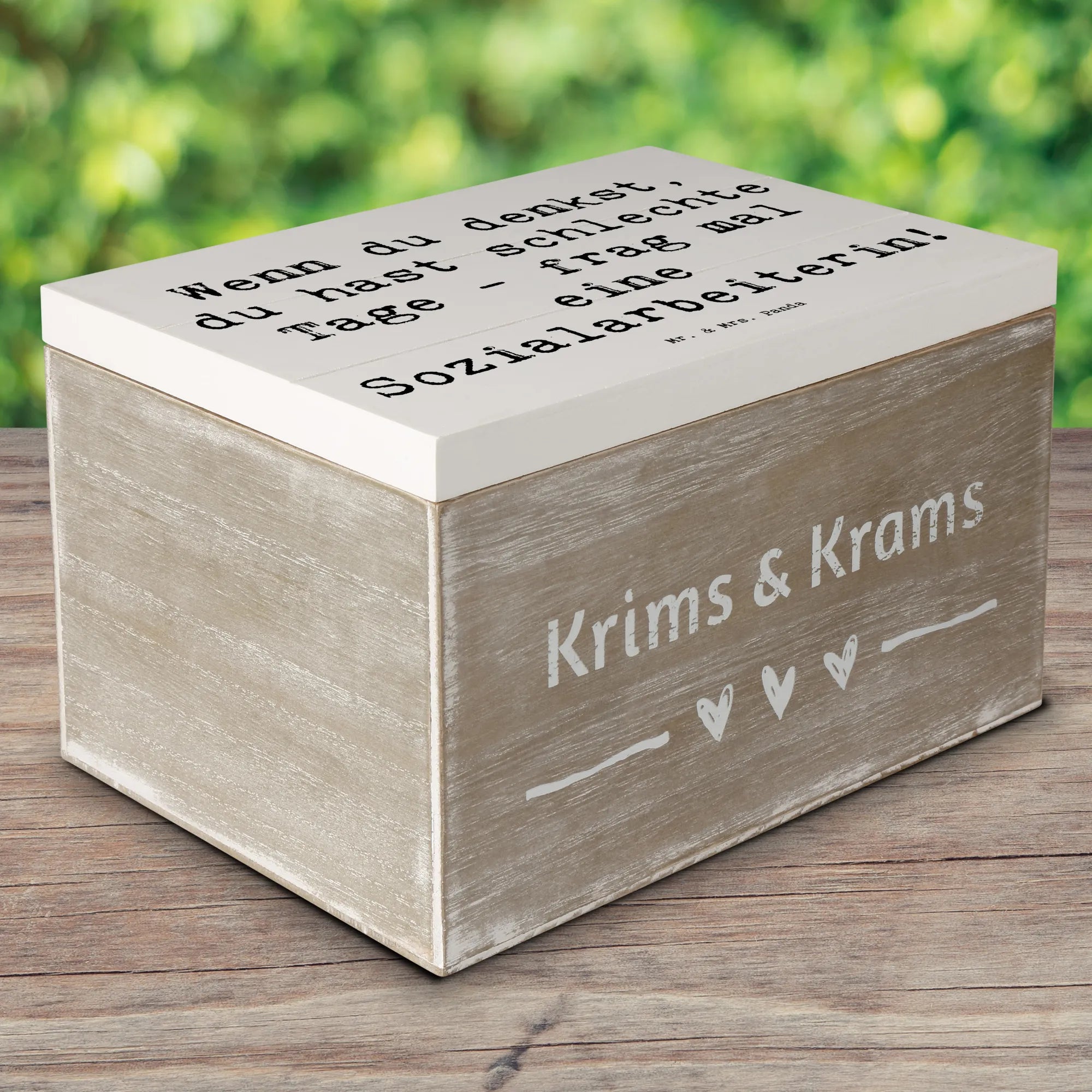 Holzkiste Spruch Sozialarbeiterin Stärketage - 22 x 15 cm - Weiß
