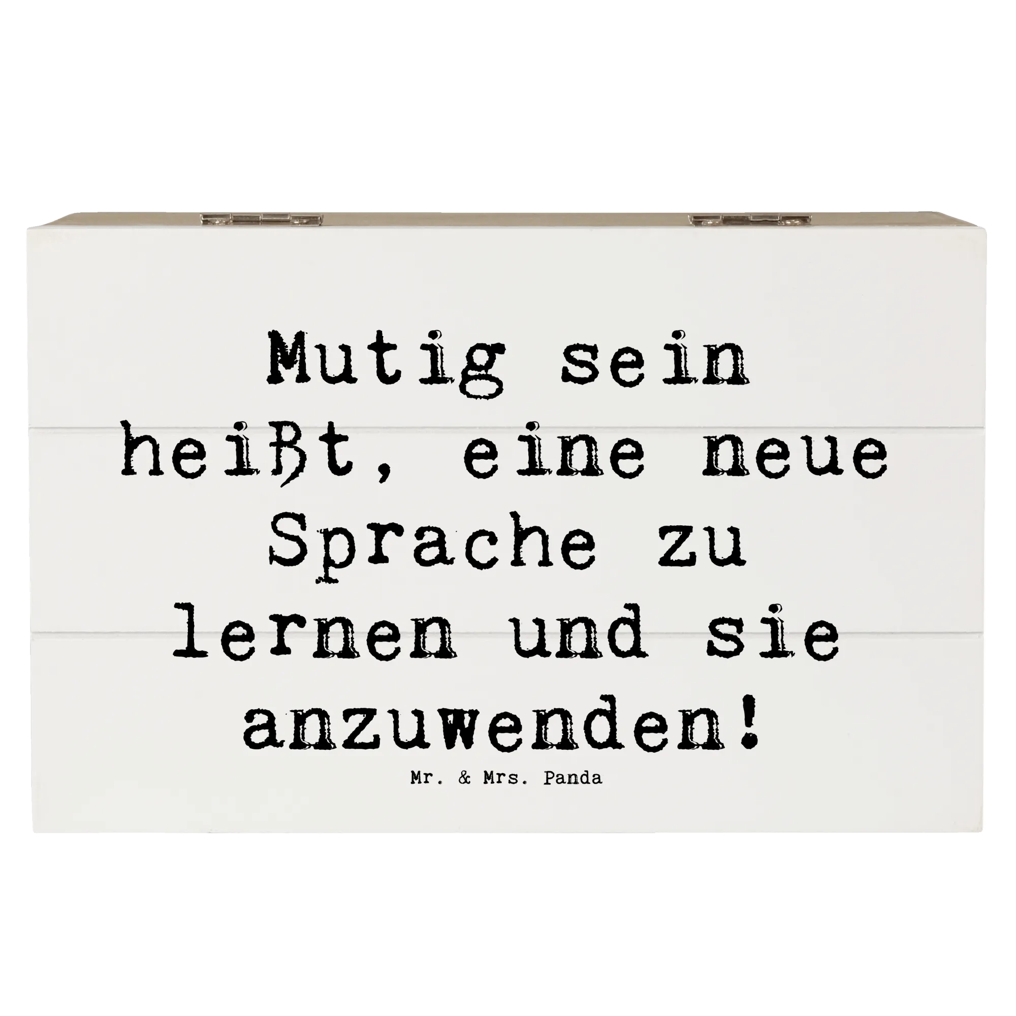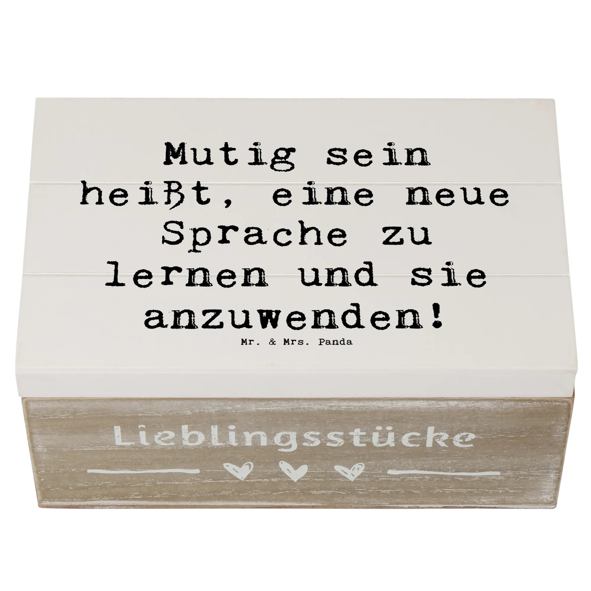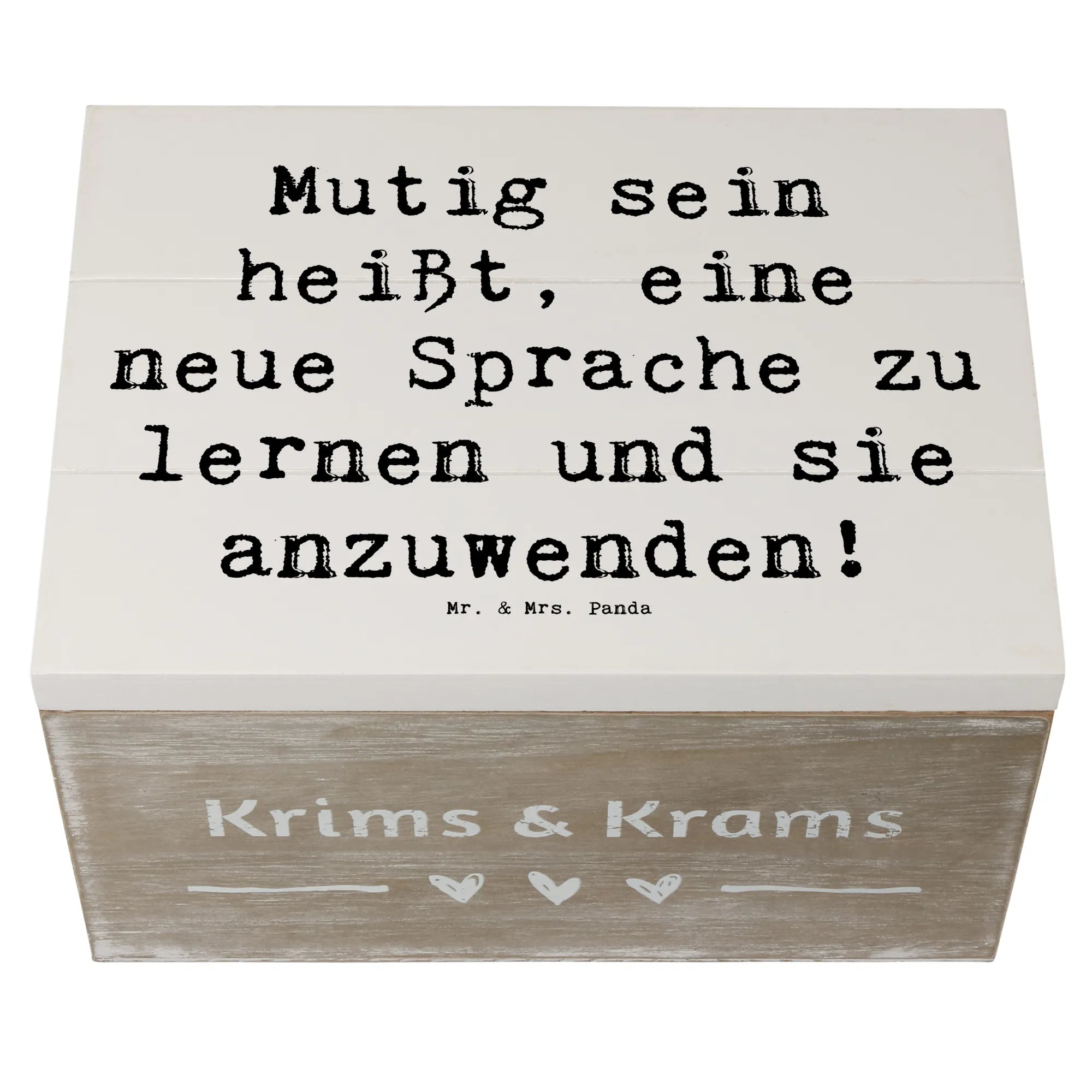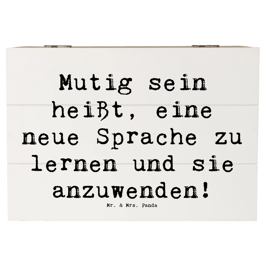 Die wunderschöne Holzkiste "Sprachen lernen und anwenden" von Mr. & Mrs. Panda ist das perfekte Geschenk für all diejenigen, die sich auf dem Weg zum Sprachenlernen befinden oder einfach ihren Mut stärken möchten! Ob für Freunde, die eine neue Sprache lernen, oder für Kinder, die ihre ersten Worte in einer Fremdsprache entdecken – diese Kiste ist mehr als nur ein Aufbewahrungsort für deine Schätze. Mit dem inspirierenden Spruch „Mutig sein heißt, eine neue Sprache zu lernen und sie anzuwenden!“ wird dein Geschenk zu einer ständigen Erinnerung daran, die eigene Komfortzone zu verlassen und Neues zu wagen.