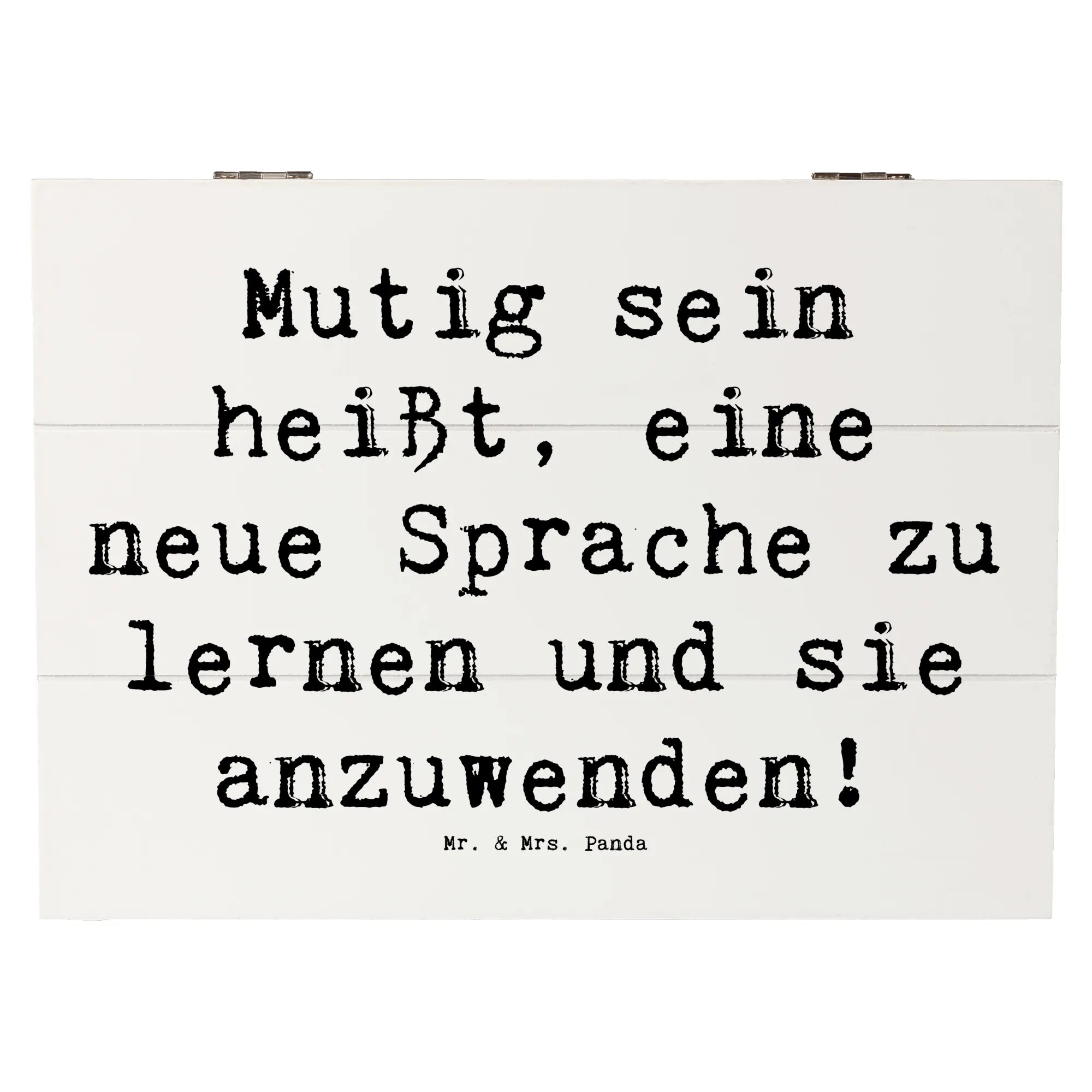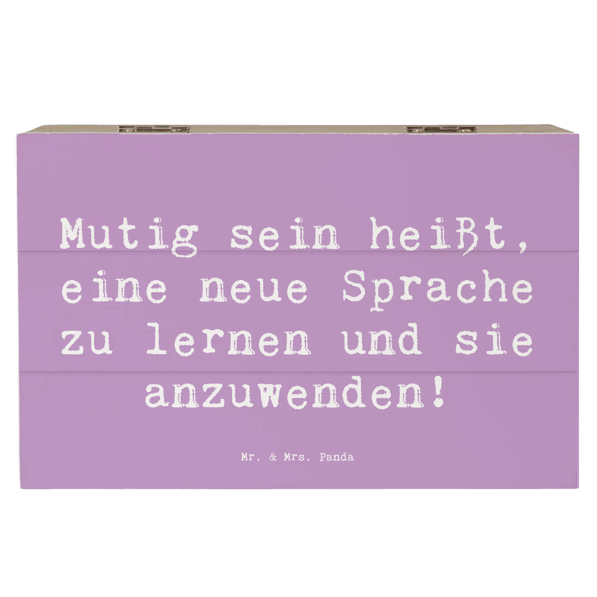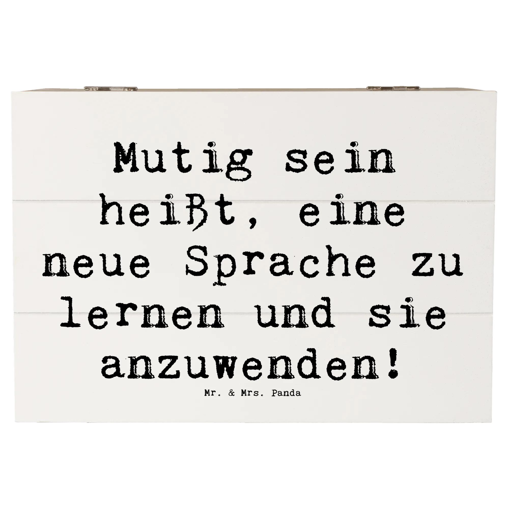 Die wunderschöne Holzkiste "Sprachen lernen und anwenden" von Mr. & Mrs. Panda ist das perfekte Geschenk für all diejenigen, die sich auf dem Weg zum Sprachenlernen befinden oder einfach ihren Mut stärken möchten! Ob für Freunde, die eine neue Sprache lernen, oder für Kinder, die ihre ersten Worte in einer Fremdsprache entdecken – diese Kiste ist mehr als nur ein Aufbewahrungsort für deine Schätze. Mit dem inspirierenden Spruch „Mutig sein heißt, eine neue Sprache zu lernen und sie anzuwenden!“ wird dein Geschenk zu einer ständigen Erinnerung daran, die eigene Komfortzone zu verlassen und Neues zu wagen.