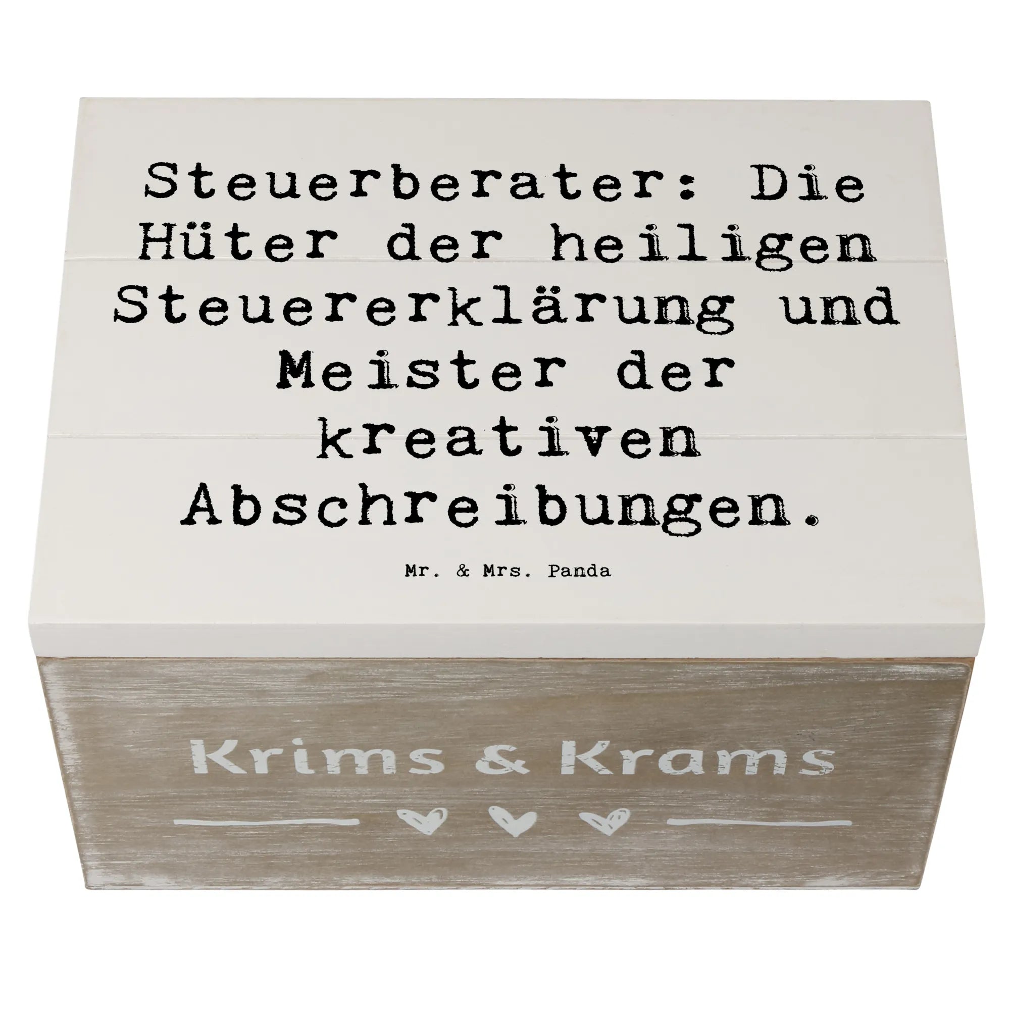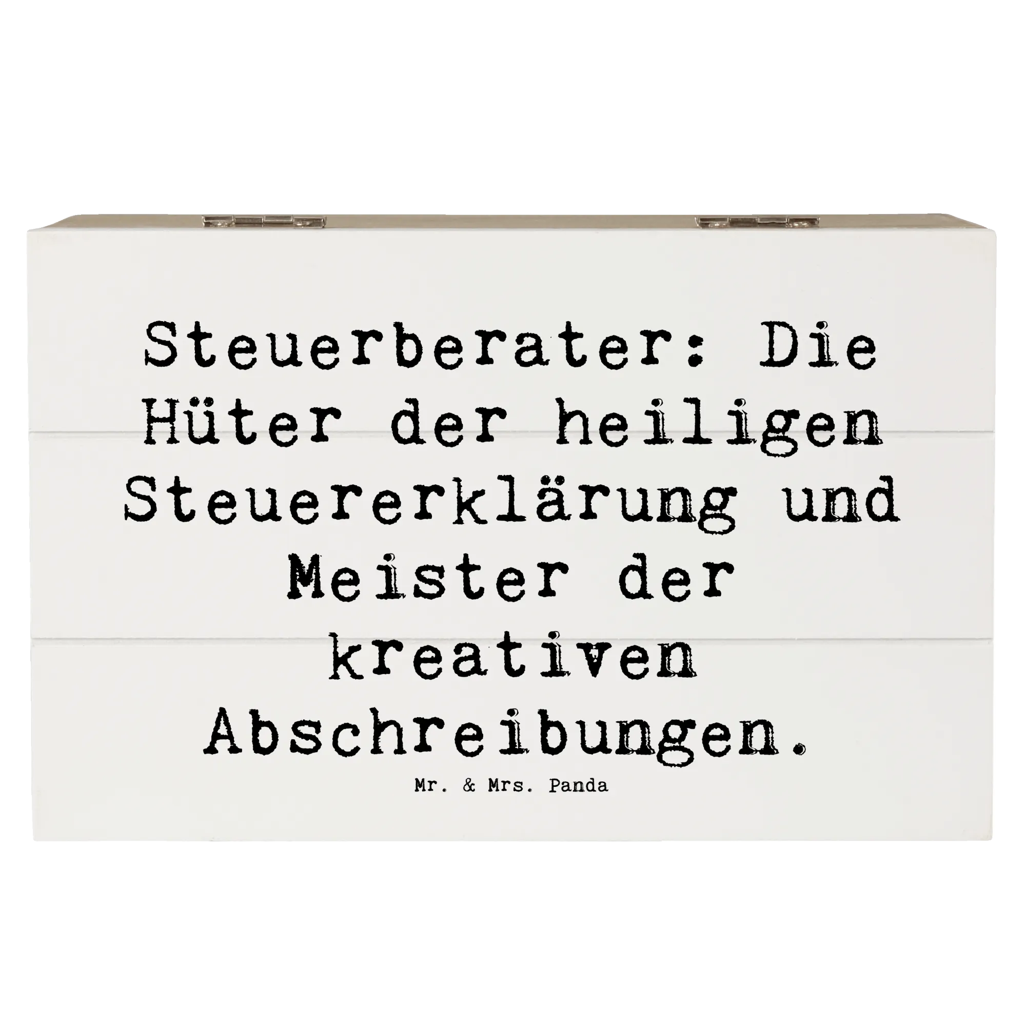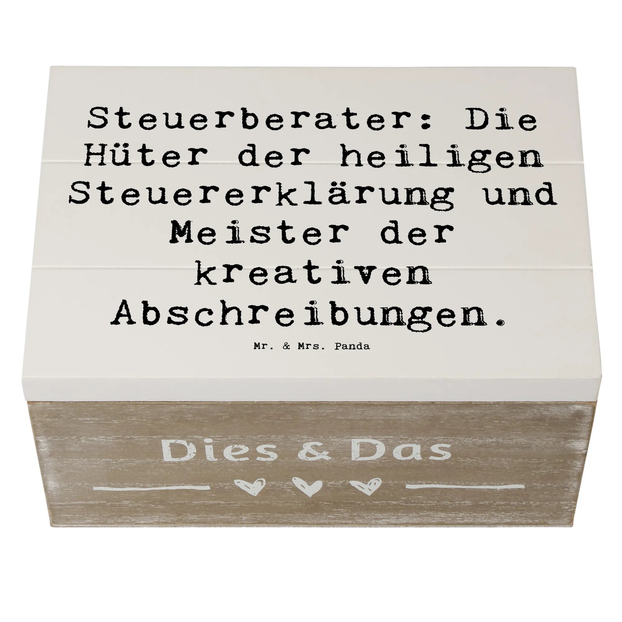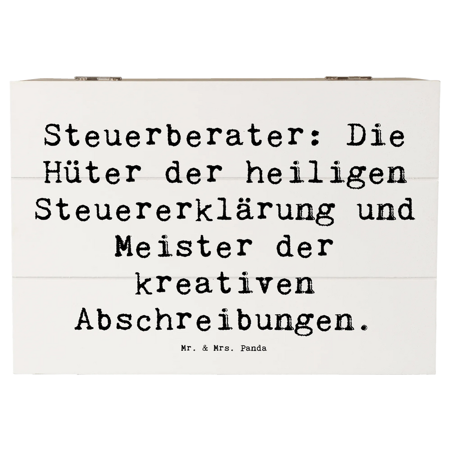 Entdecke die wundervolle Holzkiste von Mr. & Mrs. Panda, die speziell für Steuerberater entworfen wurde! Diese einzigartige Kiste ist nicht nur ein praktischer Aufbewahrungsort für all Deine Erinnerungen, sondern auch ein liebevolles Geschenk für jeden Steuerprofi.