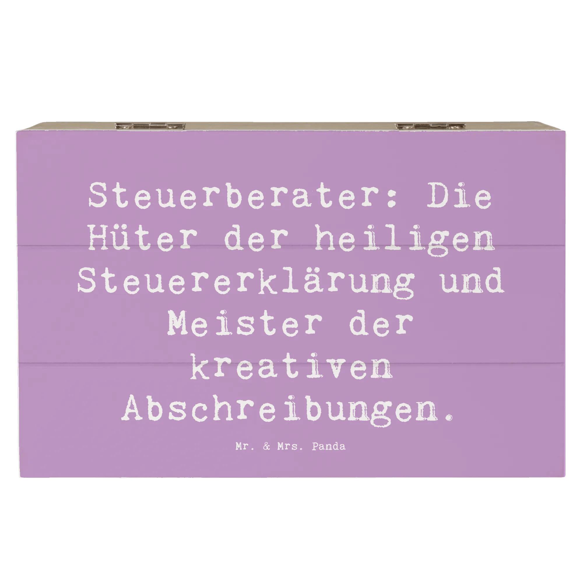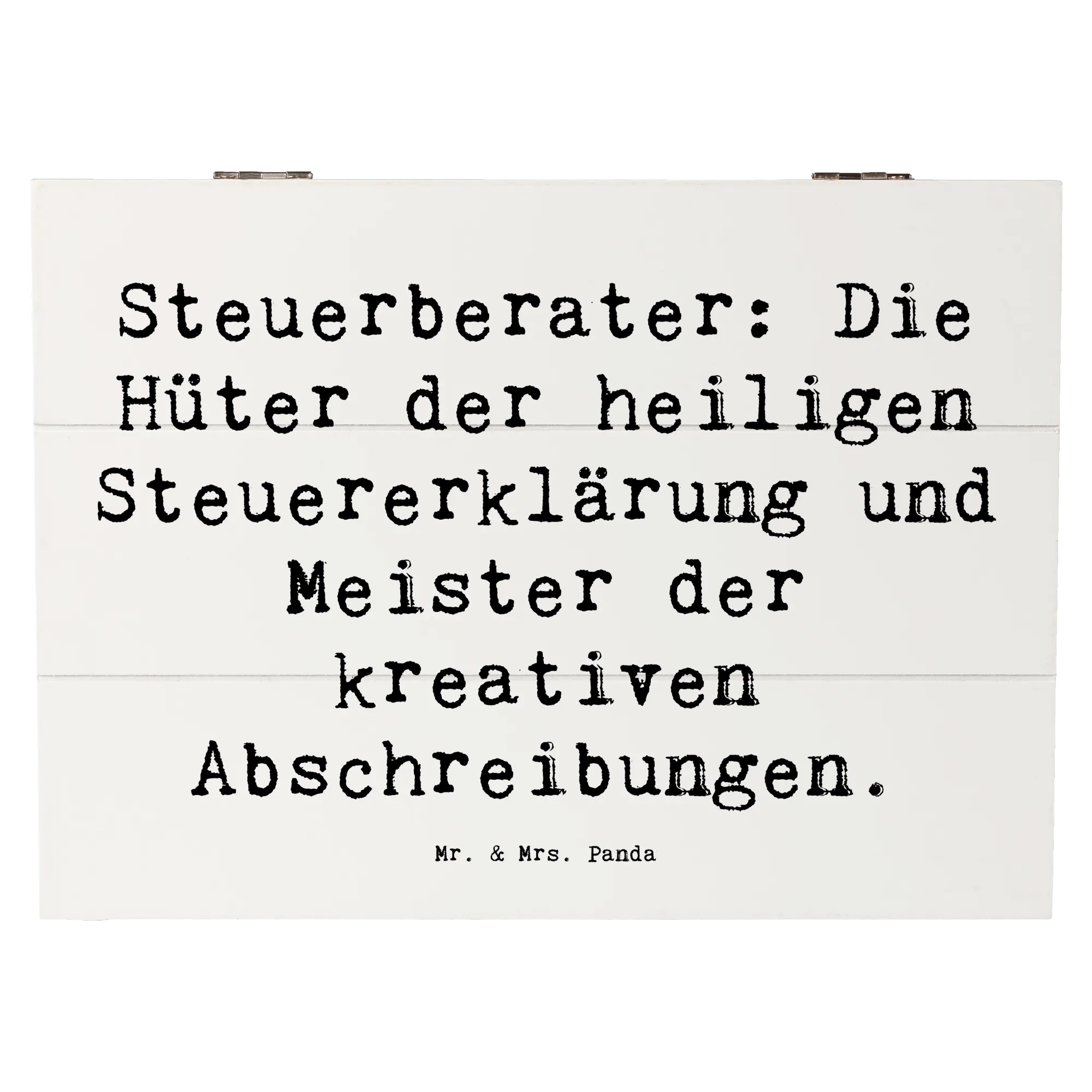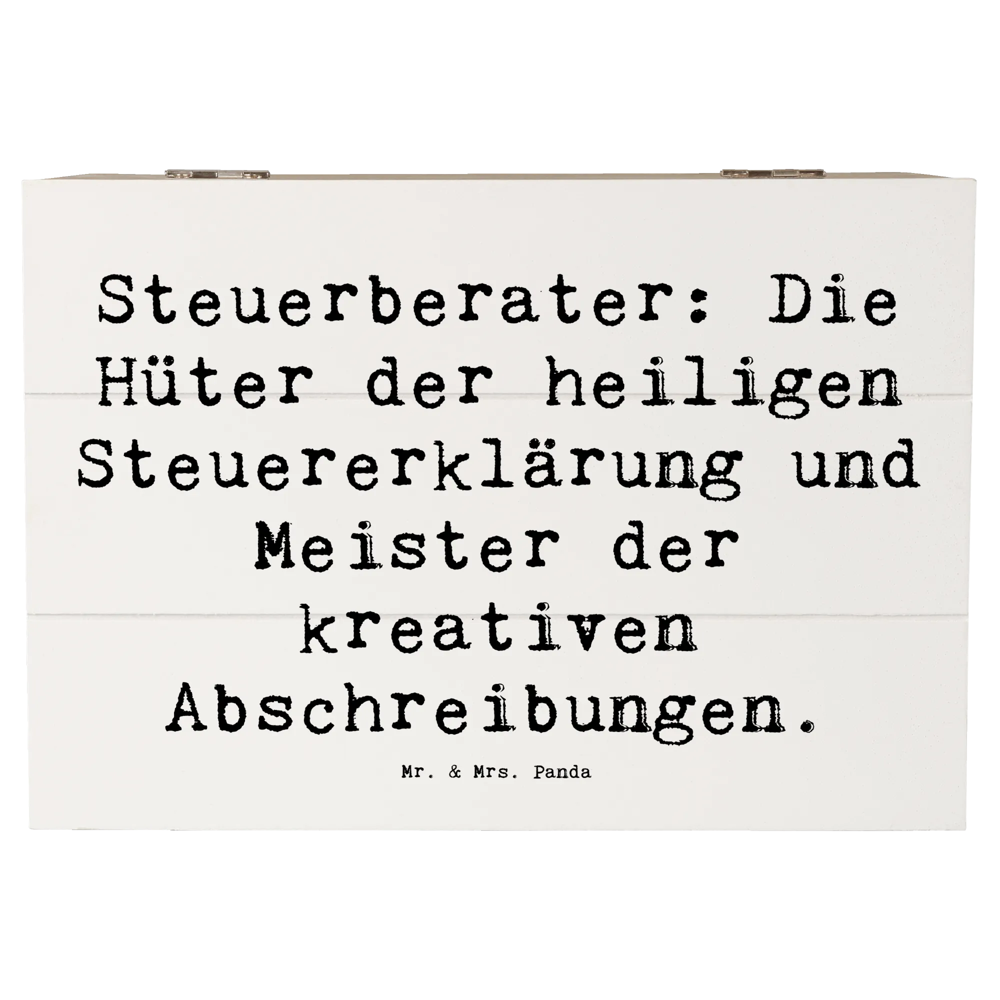 Entdecke die wundervolle Holzkiste von Mr. & Mrs. Panda, die speziell für Steuerberater entworfen wurde! Diese einzigartige Kiste ist nicht nur ein praktischer Aufbewahrungsort für all Deine Erinnerungen, sondern auch ein liebevolles Geschenk für jeden Steuerprofi.