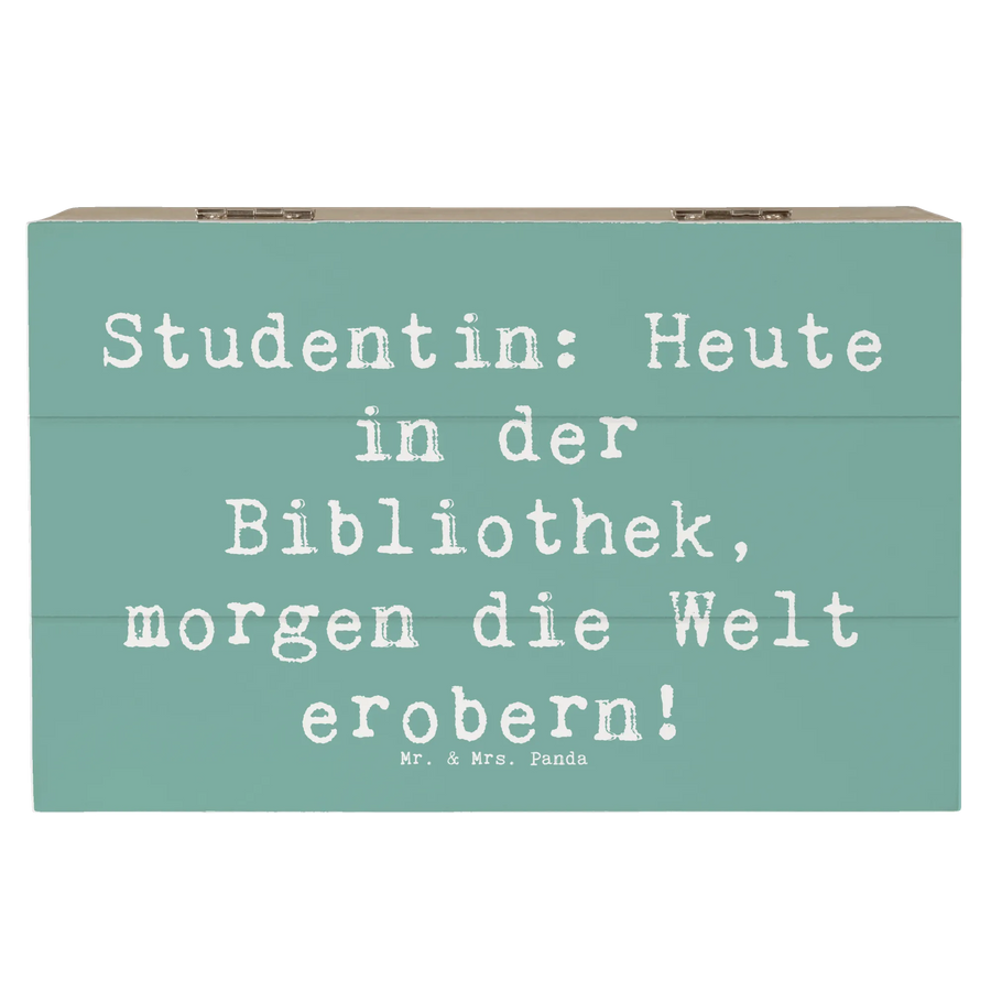 Diese wundervolle Holzkiste von Mr. & Mrs. Panda ist das perfekte Geschenk für jede Studentin! Mit dem inspirierenden Spruch "Heute in der Bibliothek, morgen die Welt erobern!" ist sie nicht nur ein schöner Blickfang, sondern auch eine praktische Aufbewahrungsbox für all ihre wertvollen Erinnerungen und Schätze.