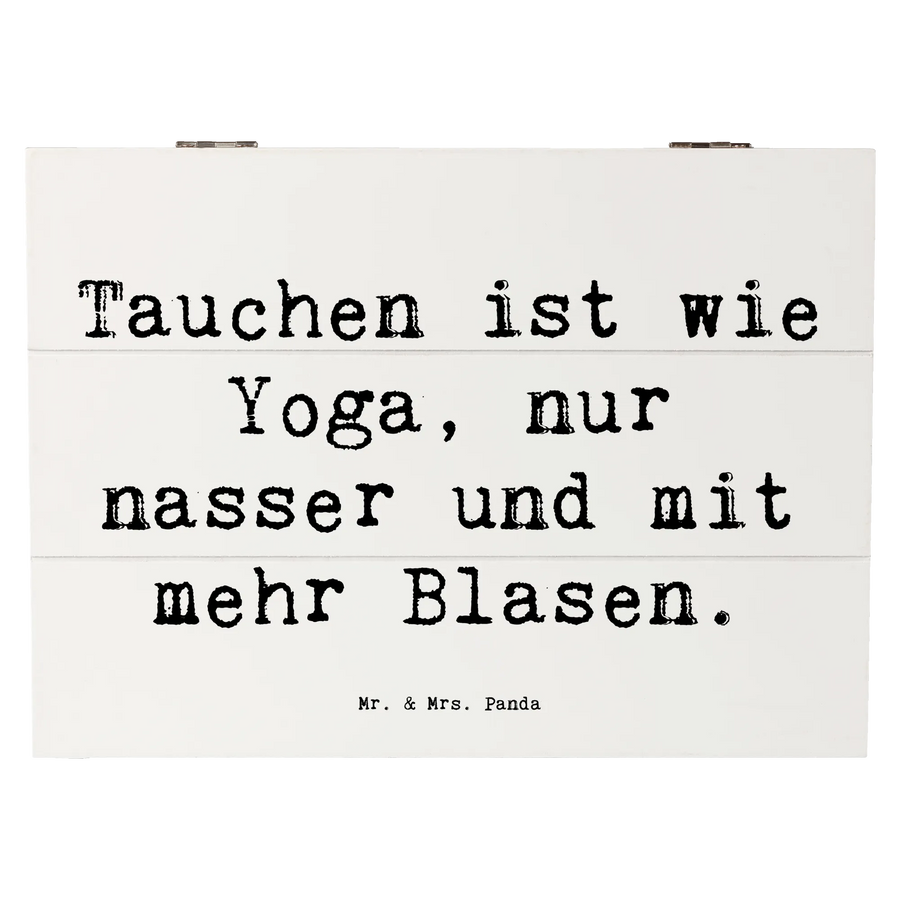 Entdecke die perfekte Holzkiste von Mr. & Mrs. Panda, die nicht nur ein wunderschönes Design hat, sondern auch eine ganz besondere Botschaft trägt: 'Tauchen ist wie Yoga, nur nasser und mit mehr Blasen.' Diese praktische Erinnerungskiste ist aus hochwertiger, robuster Holzfaser gefertigt und hat die idealen Maße von 190 mm x 120 mm x 100 mm.