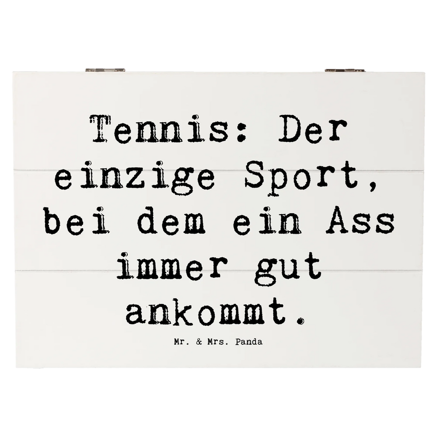 Entdecke die perfekte Holzkiste von Mr. & Mrs. Panda mit dem liebevollen Motiv "Tennis: Der einzige Sport, bei dem ein Ass immer gut ankommt". Diese wunderschöne Kiste ist der ideale Ort, um all deine wertvollen Erinnerungen zu bewahren.