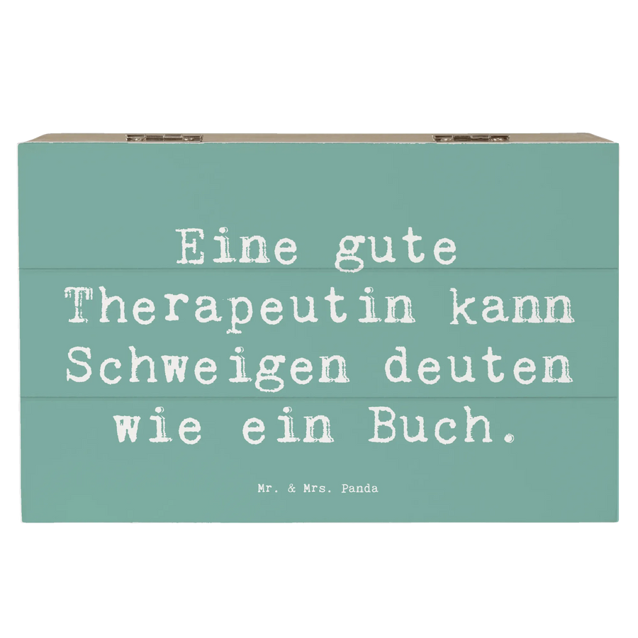 Die wunderschöne Holzkiste von Mr. & Mrs. Panda mit dem einzigartigen Motiv "Therapeutin" ist das perfekte Geschenk für alle, die in diesem wichtigen Berufsfeld tätig sind oder es schätzen. Mit einem liebevollen Spruch wie "Eine gute Therapeutin kann Schweigen deuten wie ein Buch" bringt diese Kiste nicht nur ein Lächeln auf die Gesichter, sondern auch eine persönliche Note in jeden Raum.