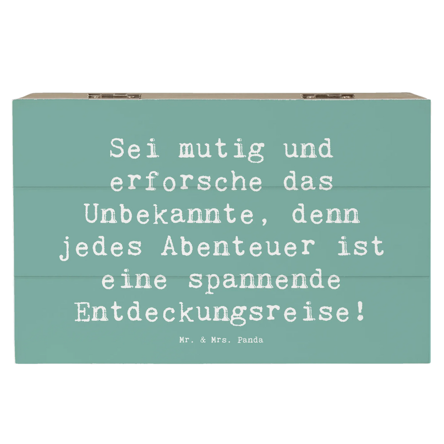 Entdecke die wunderschöne Holzkiste "Unbekannte Orte erkunden" aus der besonderen Mutmacher-Kollektion von Mr. & Mrs. Panda! Diese bezaubernde Kiste ist mehr als nur ein Aufbewahrungsort – sie ist der perfekte Platz für all deine wertvollen Schätze und Erinnerungen.