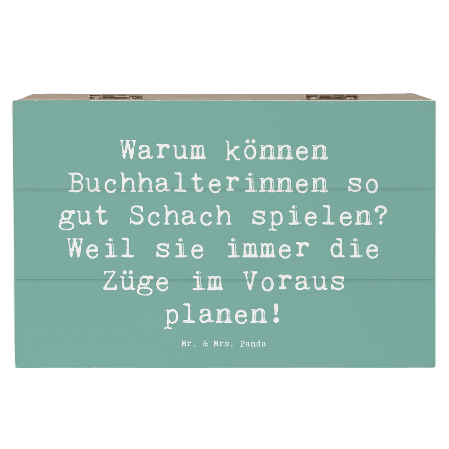 Holzkiste Spruch Warum können Buchhalterinnen so gut Schach spielen? Weil sie immer die Züge im Voraus planen! - 19 x 12 cm - Meeresbrise
