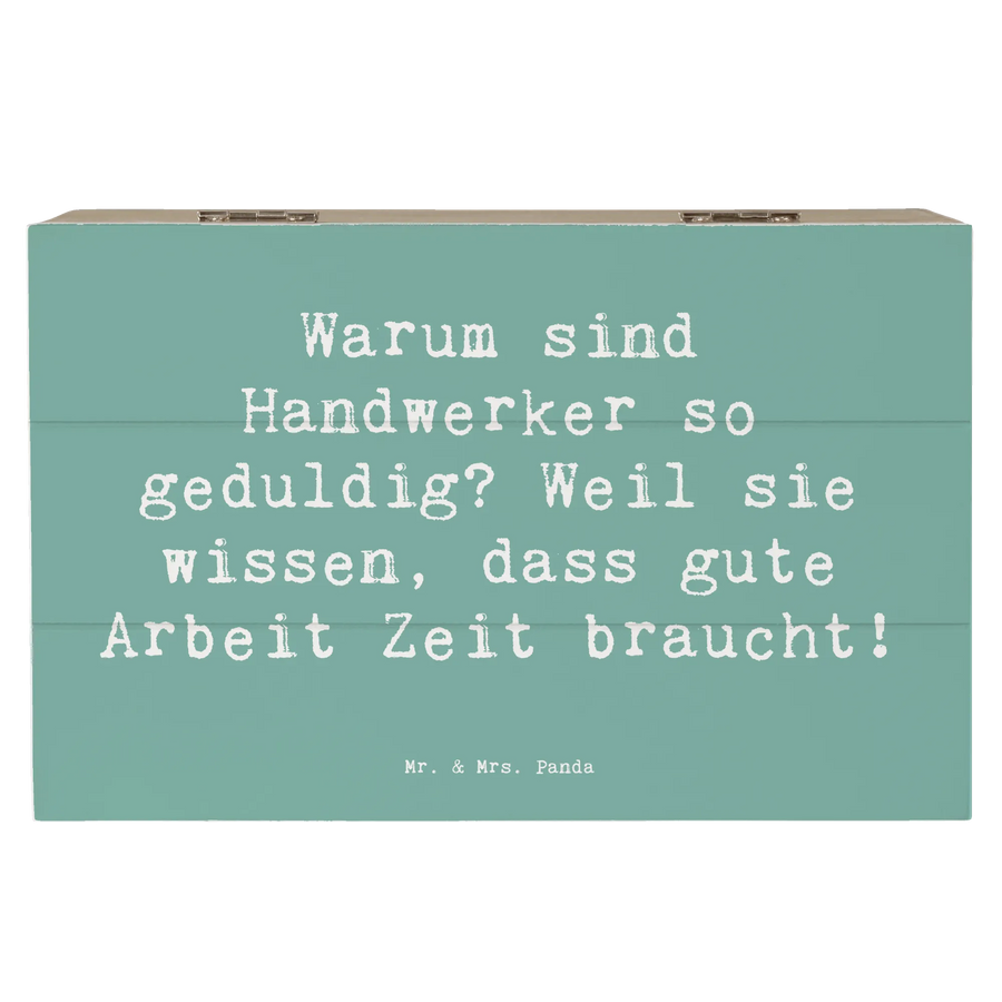 Holzkiste Spruch Warum sind Handwerker so geduldig? Weil sie wissen, dass gute Arbeit Zeit braucht! - 19 x 12 cm - Meeresbrise